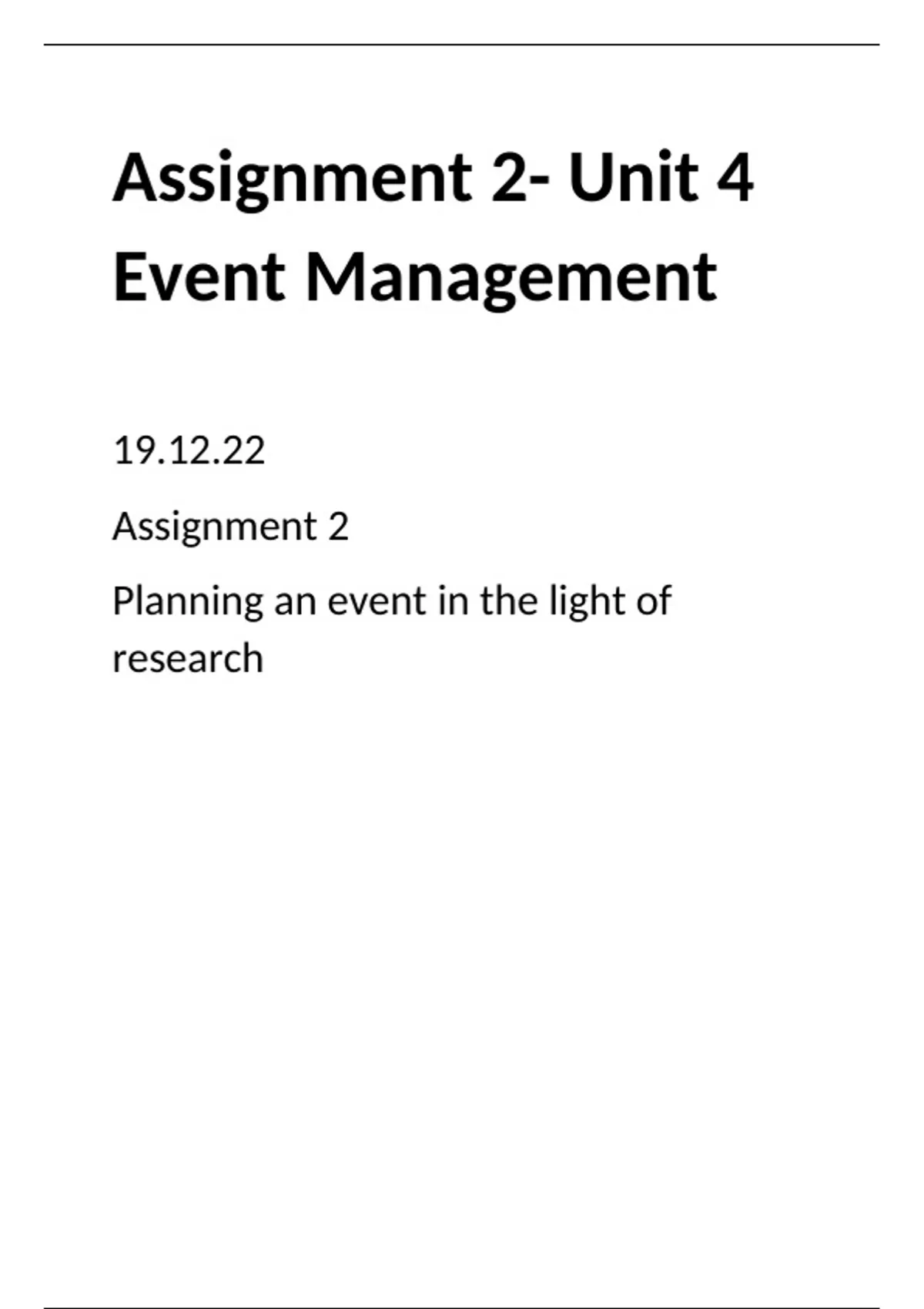 business level 3- unit 4 managing an event- assignment 2