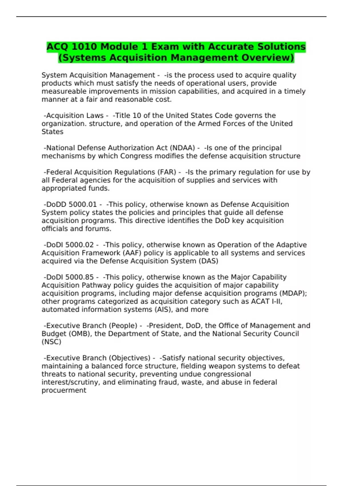 ACQ 1010 Module 1 Exam with Accurate Solutions