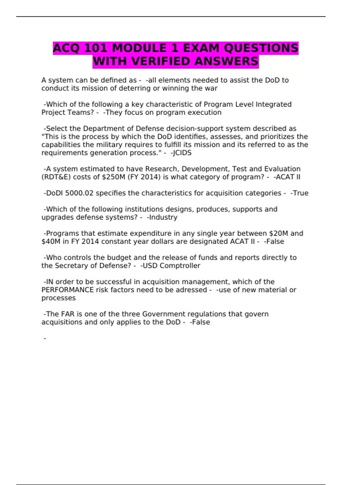 ACQ 101 MODULE 1 EXAM QUESTIONS