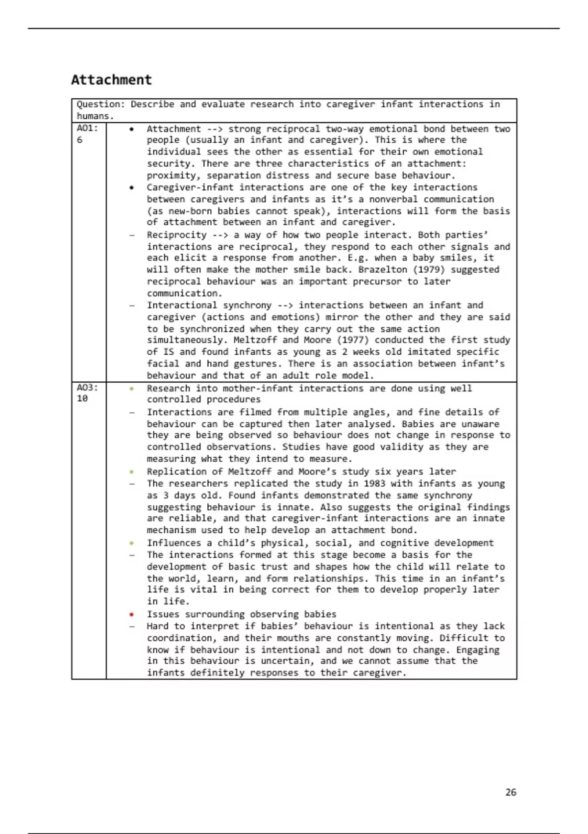 AO1: • Attachment --> strong reciprocal two-way emotional bond between two