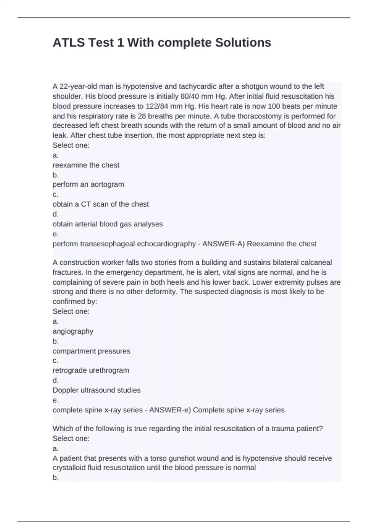 shoulder. His blood pressure is initially 80/40 mm Hg. After initial fluid resuscitation his
