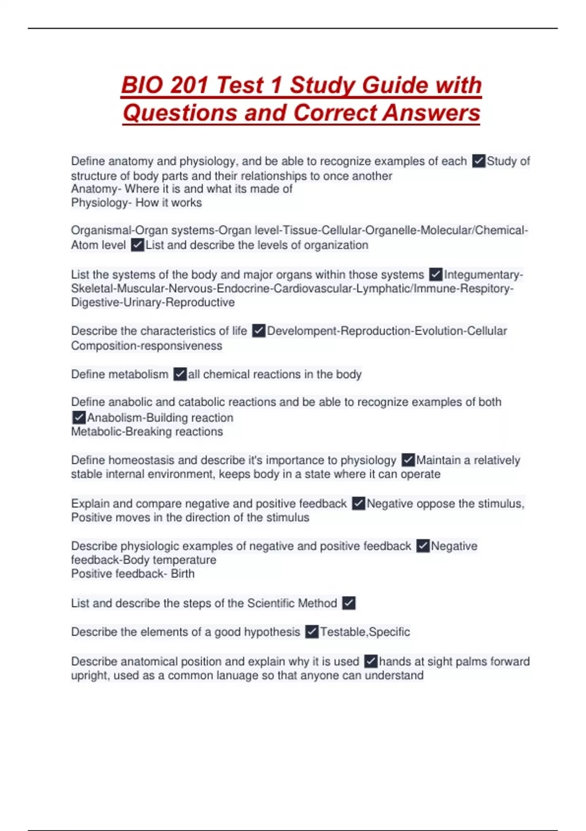 Define anatomy and physiology, and be able to recognize examples of each ✅Study of