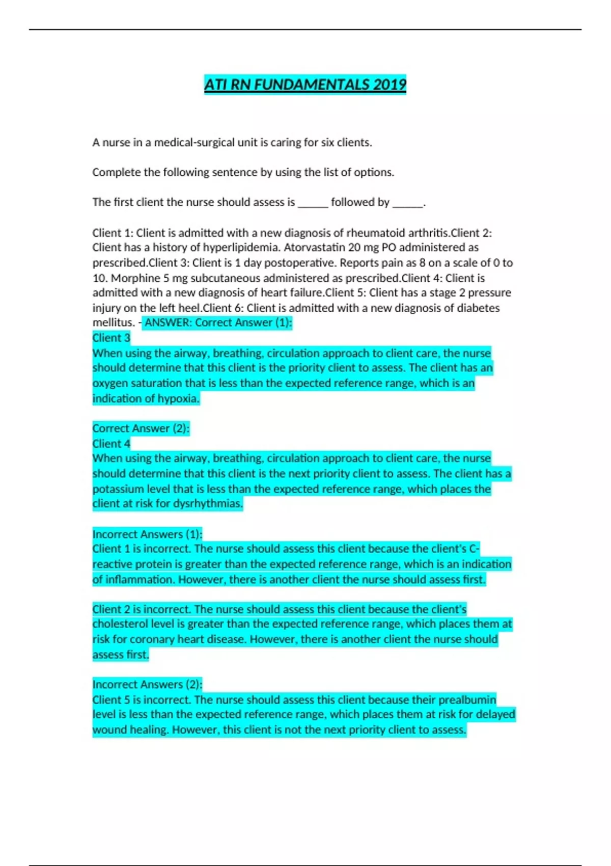 client's condition." - ANSWER: Correct Answer: