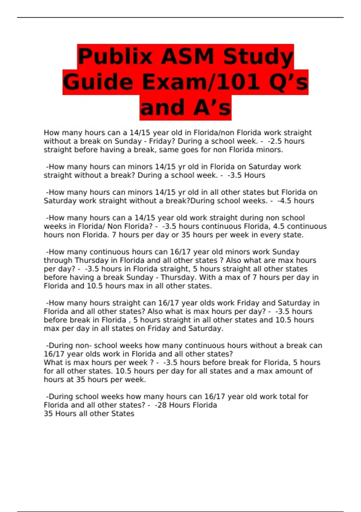 Florida and all other states? - -28 Hours Florida