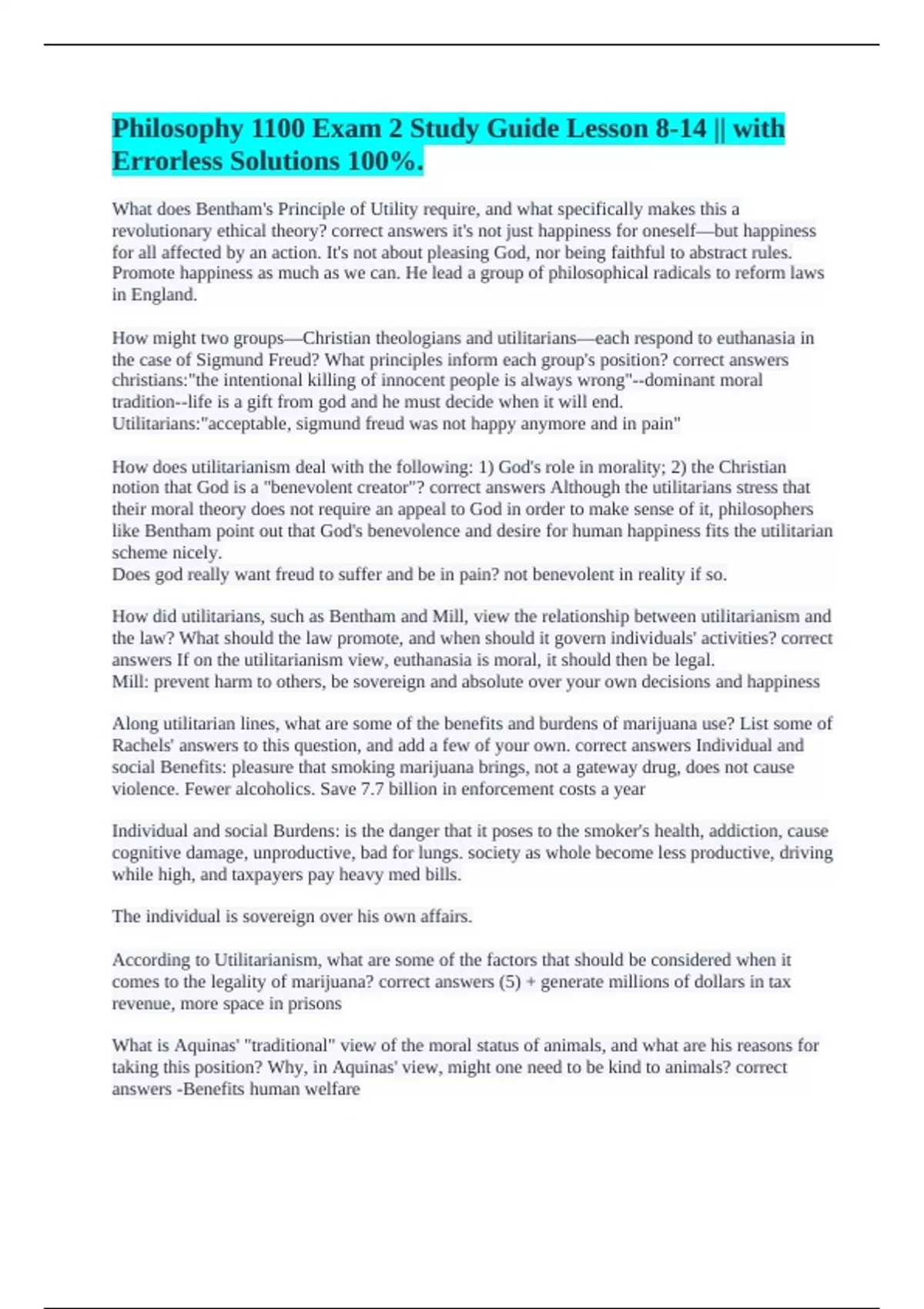 notion that God is a "benevolent creator"? correct answers Although the utilitarians stress that