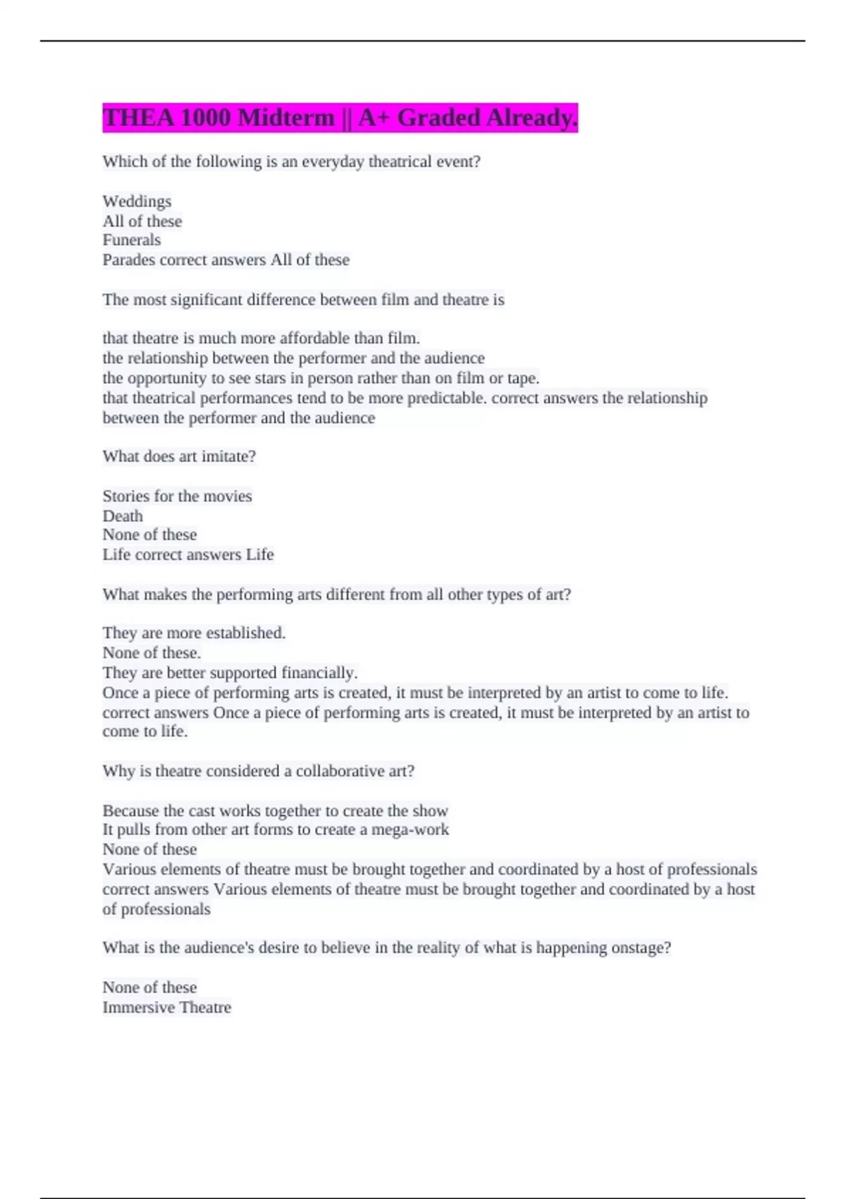 correct answers Once a piece of performing arts is created, it must be interpreted by an artist to