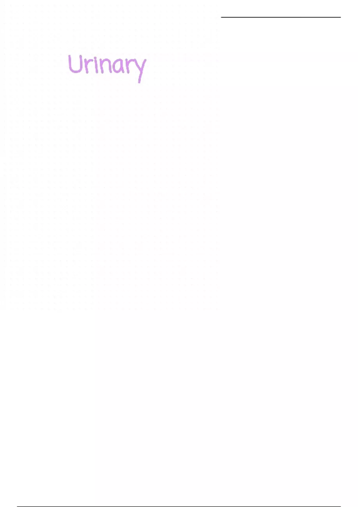 In depth summary of all Urinary lectures in the RVC BVETMED2 course from 2023/24. This is in a neat note format with diagrams and photos with annotations. Important definitions and words and highlighted and colour coded to give a clear and easy note reading process. Lectures covered; Overview and anatomy of urinary system Development of Urinary system Gross Anatomy and species differences Glomerular filtration Autoregulation of the GFR Proximal convoluted tubules Loop of Henle ADH Distal Tubule and Sodium Mineral Balance Micturition