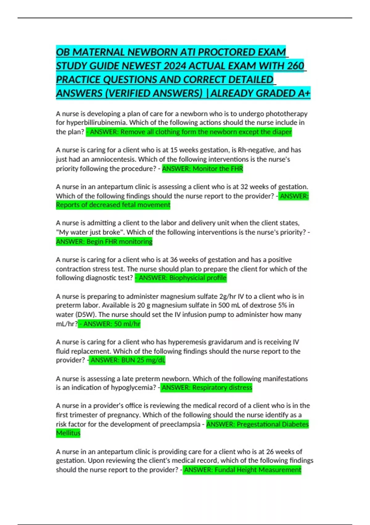 STUDY GUIDE NEWEST 2024 ACTUAL EXAM WITH 260