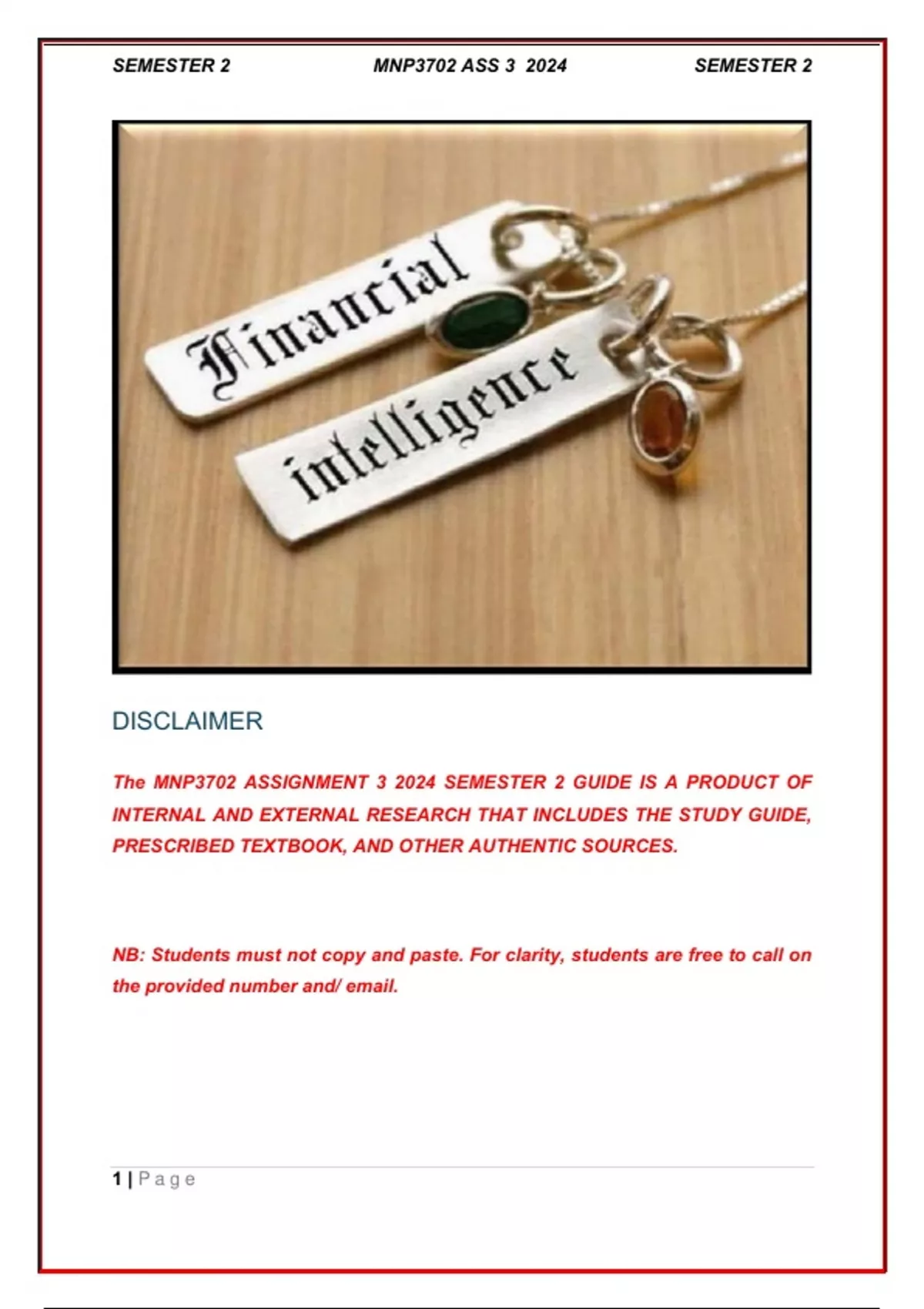 The MNP3702 ASSIGNMENT 3 2024 SEMESTER 2 GUIDE IS A PRODUCT OF