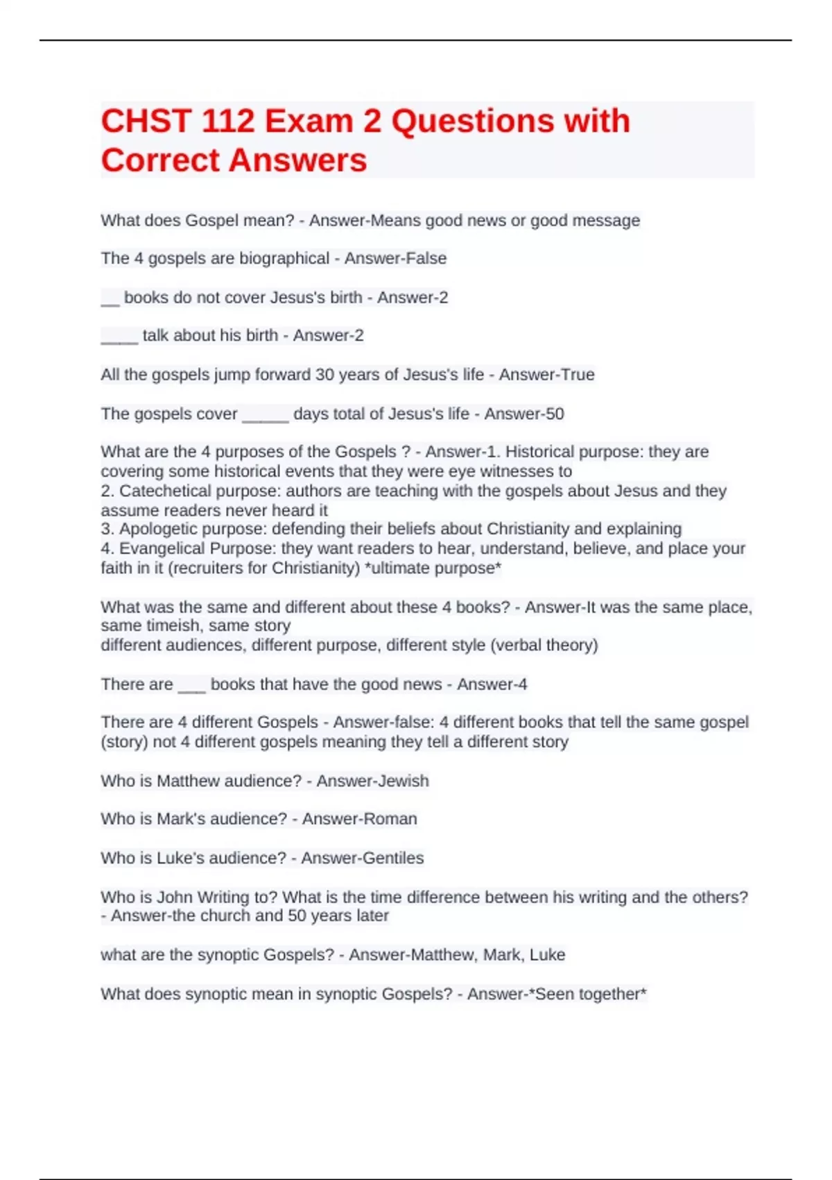 Answer-Critical study of the Gospels