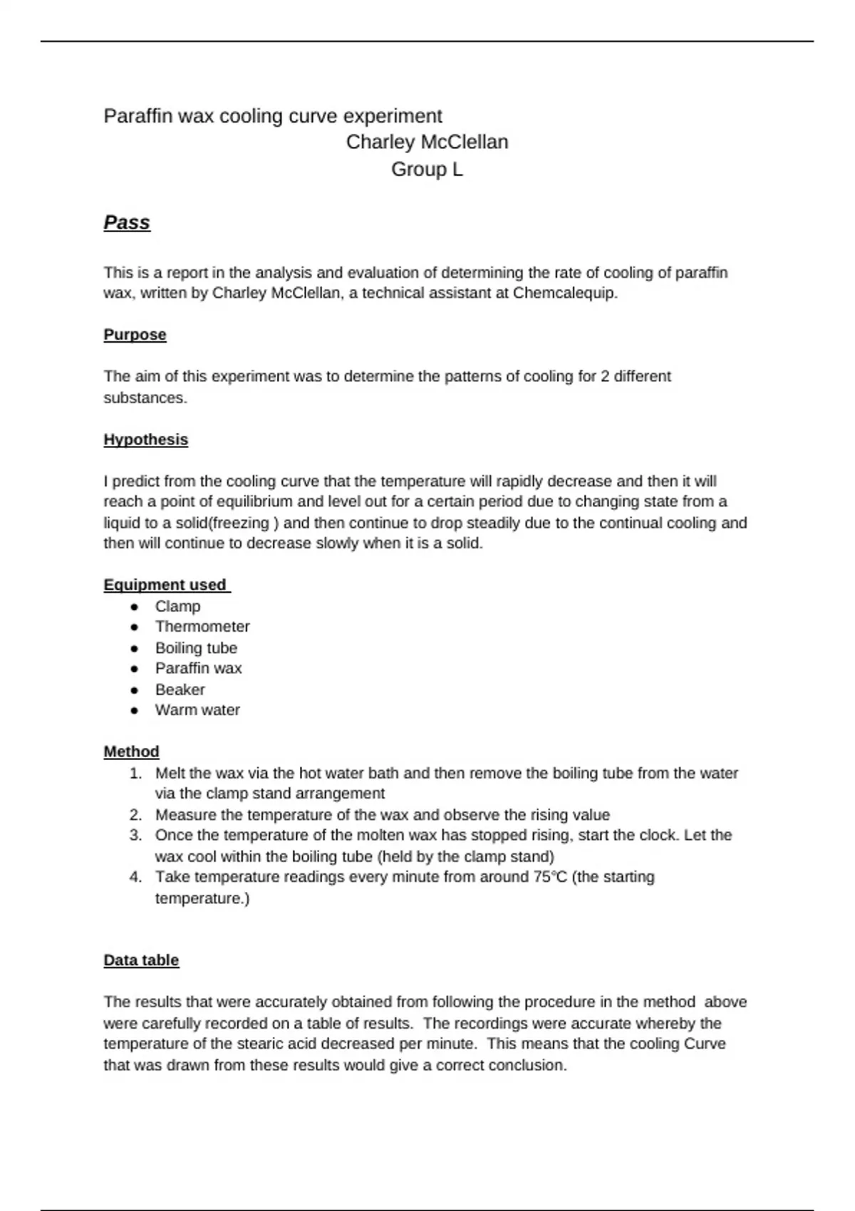 This is a report in the analysis and evaluation of determining the rate of cooling of paraffin