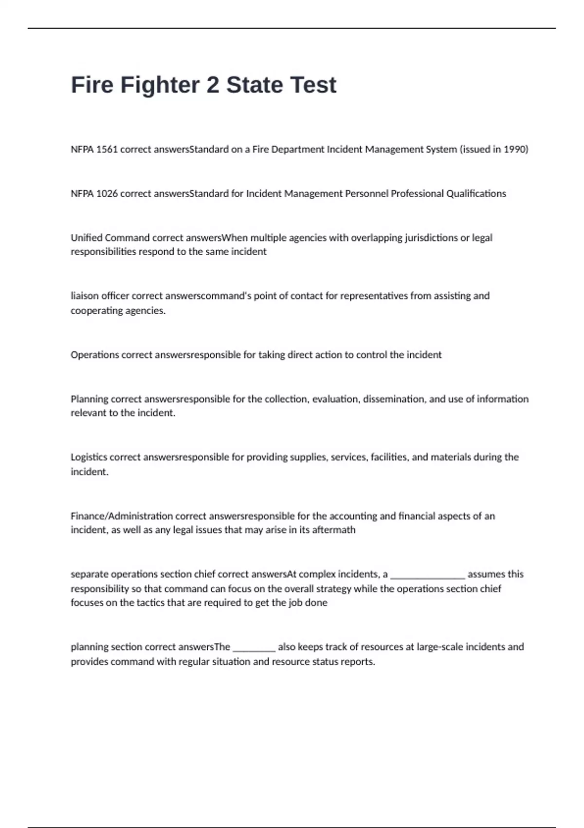 NFPA 1561 correct answersStandard on a Fire Department Incident Management System (issued in 1990)