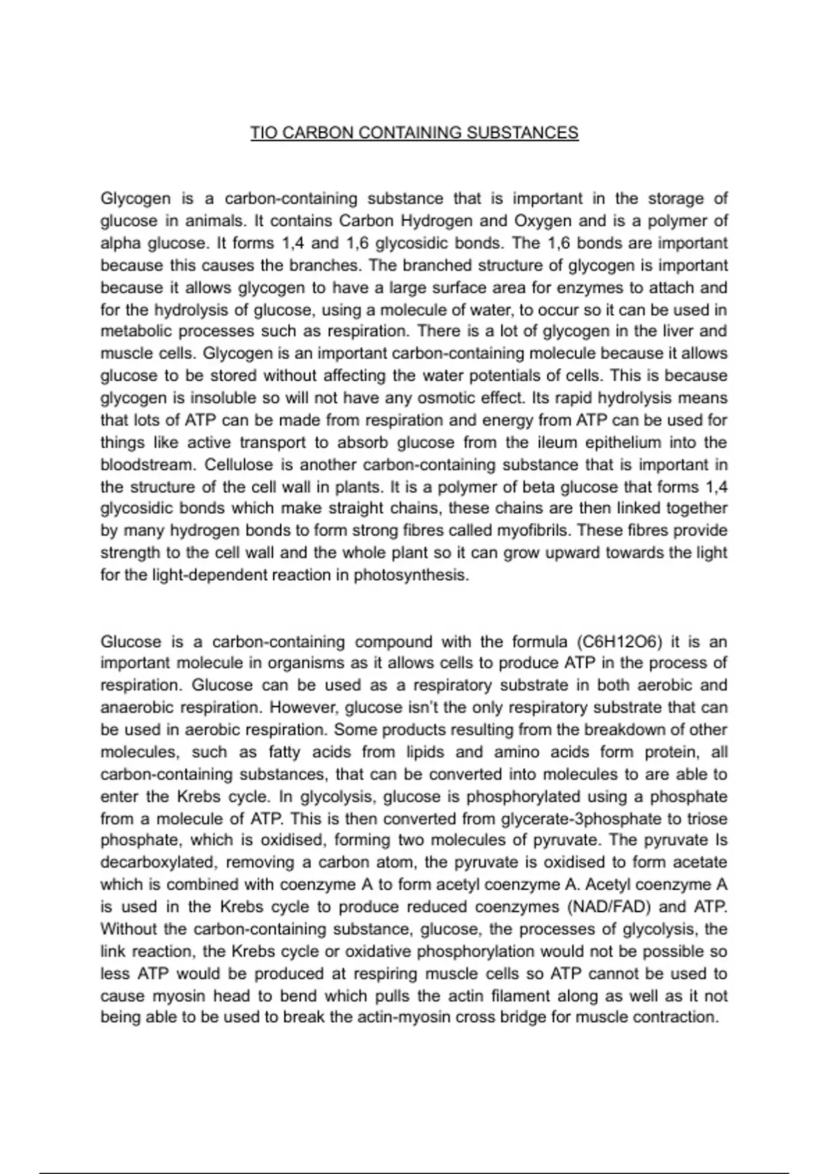 AQA A-LEVEL BIOLOGY ESSAY: THE IMPORTANCE OF CARBON CONTAINING SUBSTANCES