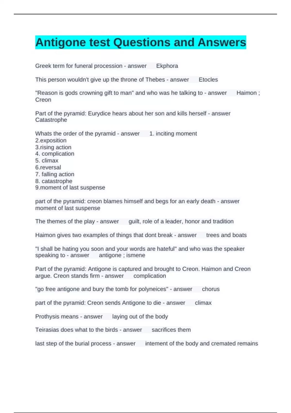 part of the pyramid: Creon sends Antigone to die - answer climax