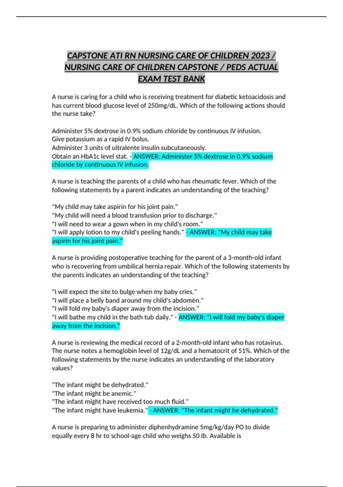 CAPSTONE ATI RN NURSING CARE OF CHILDREN 2023 /