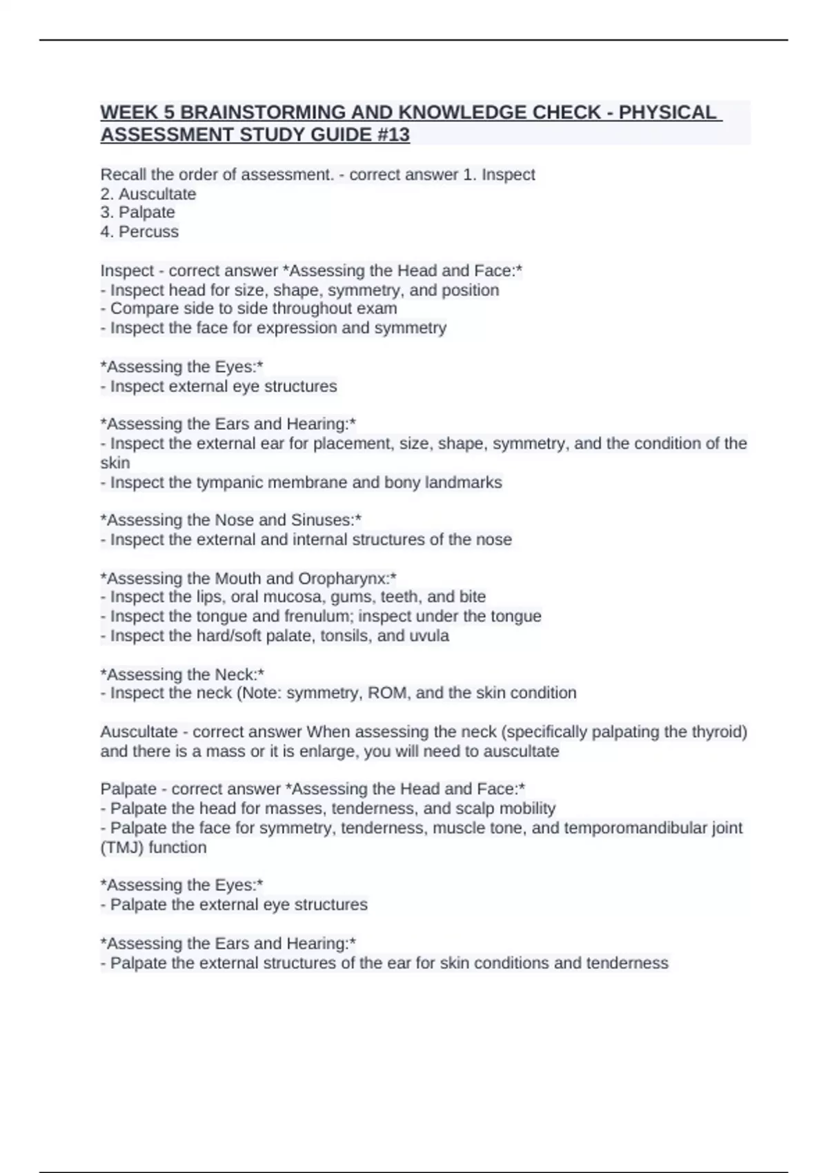 Inspect - correct answer *Assessing the Head and Face:*
