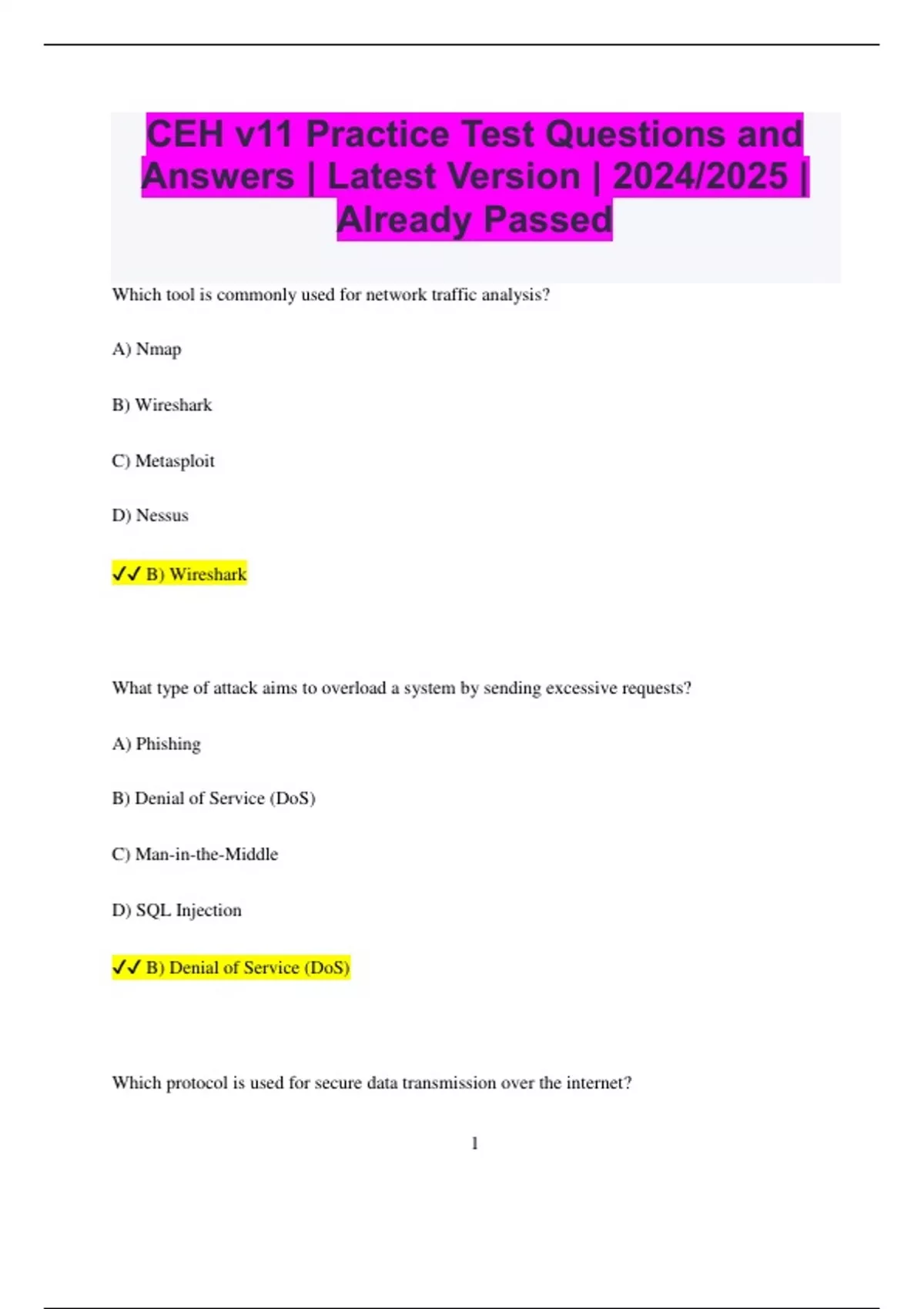 ✔✔ C) HTTPS