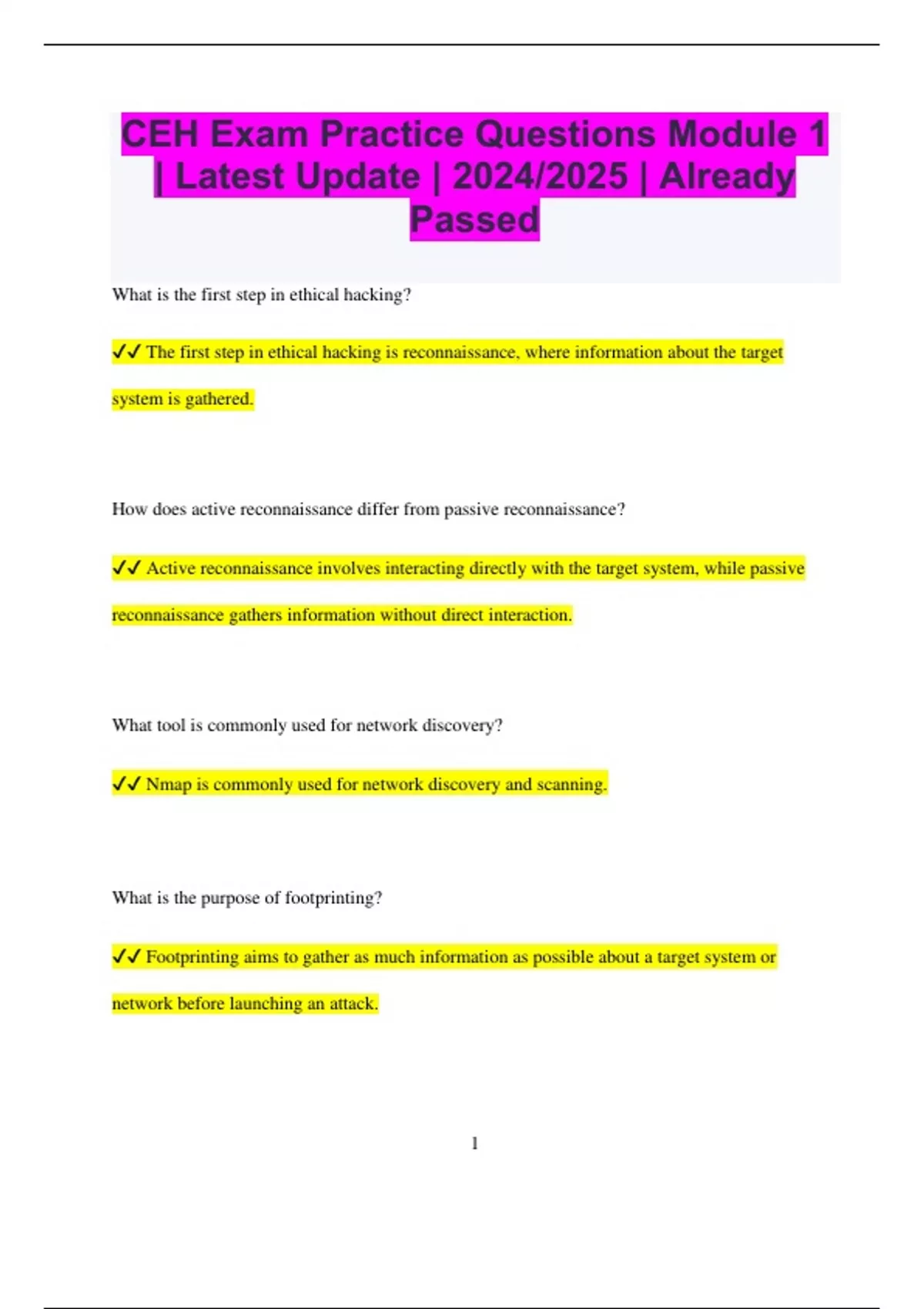 CEH Exam Practice Questions Module 1 | Latest Update | 2024/2025 | Already Passed