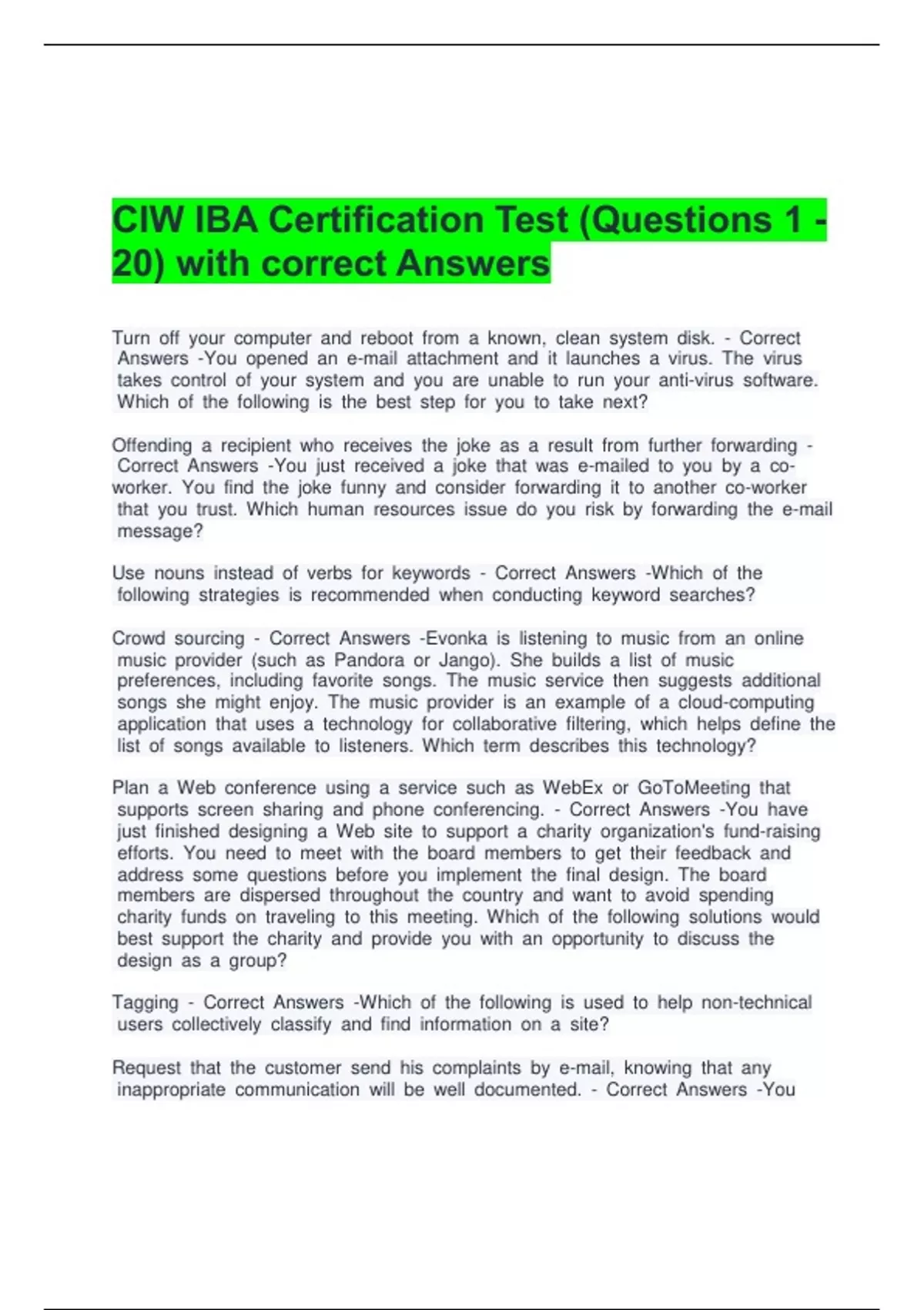 CIW IBA Certification Test (Questions 1 - 20) with correct Answers