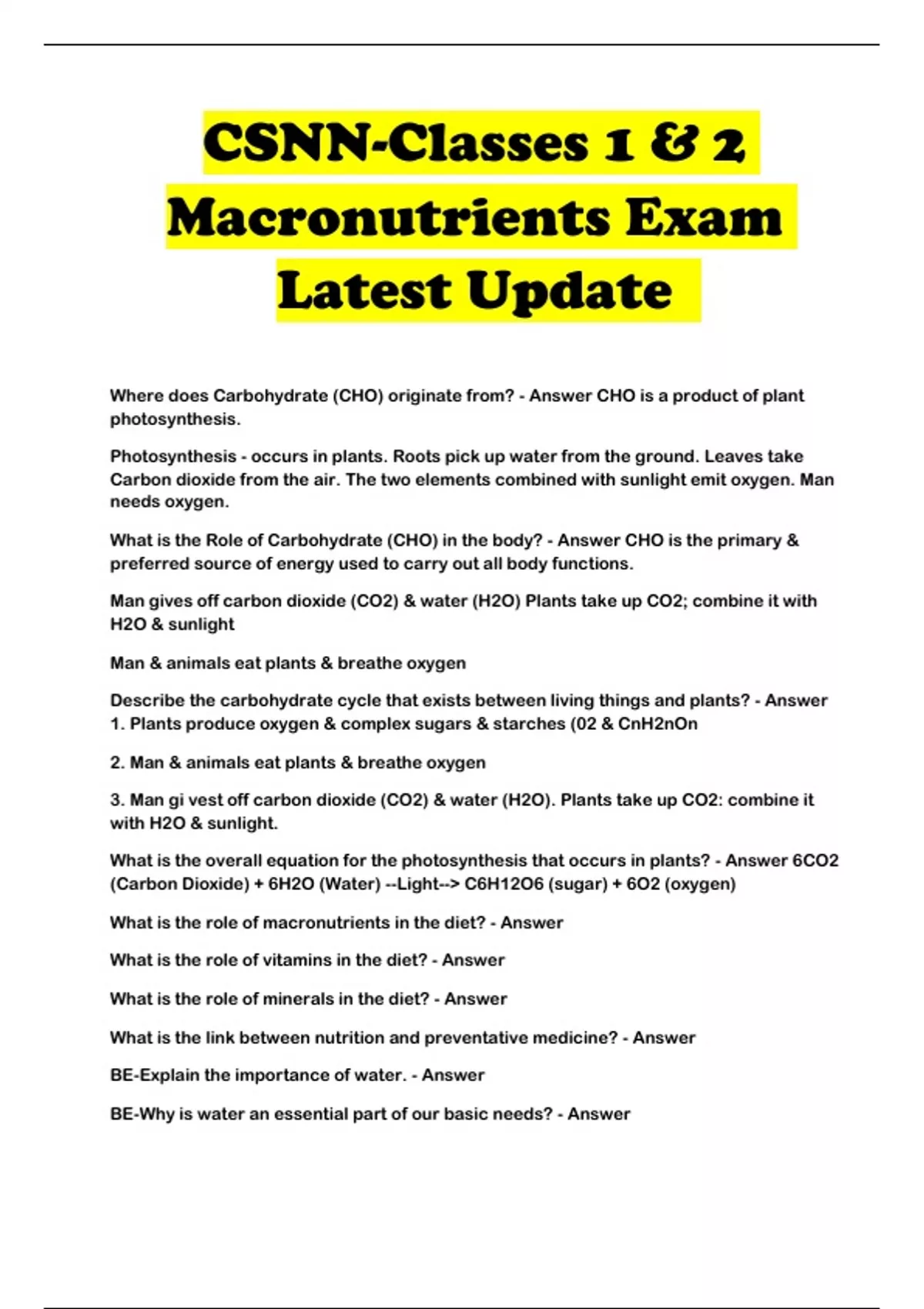 Macronutrients Exam