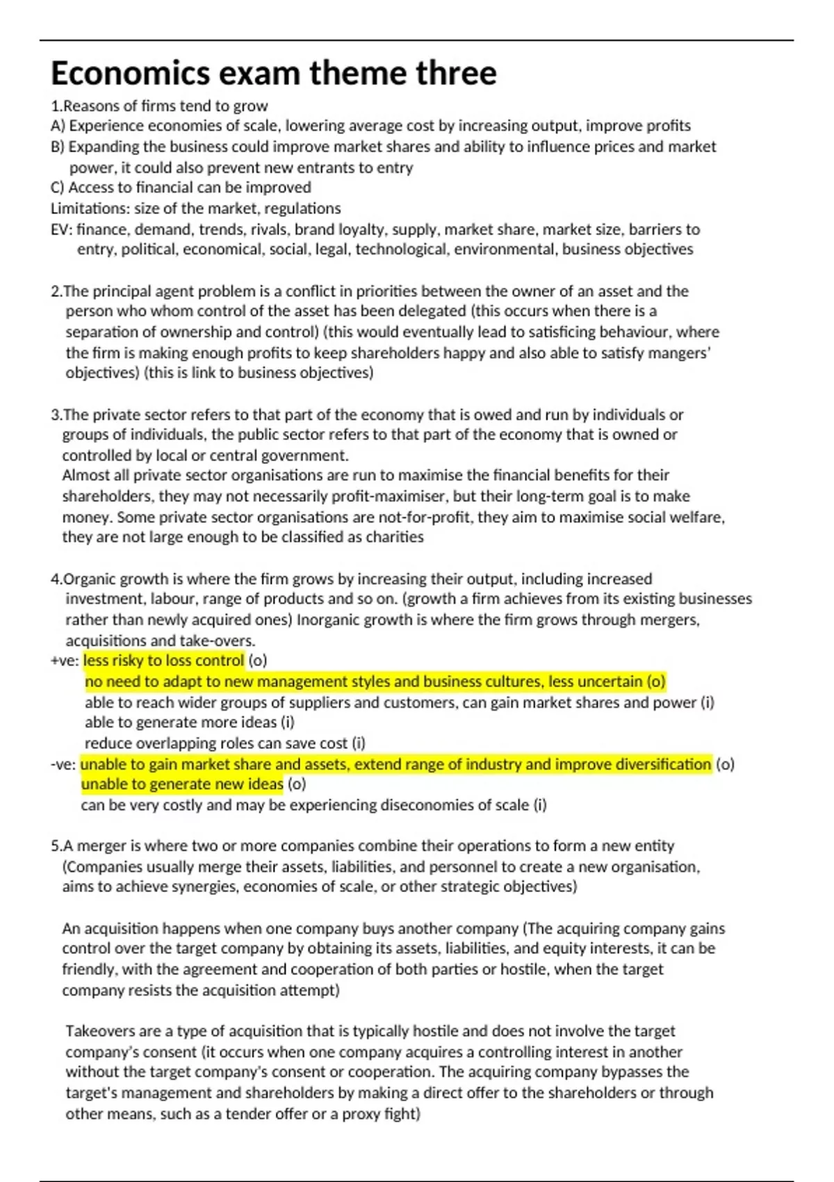 4.Organic growth is where the firm grows by increasing their output, including increased