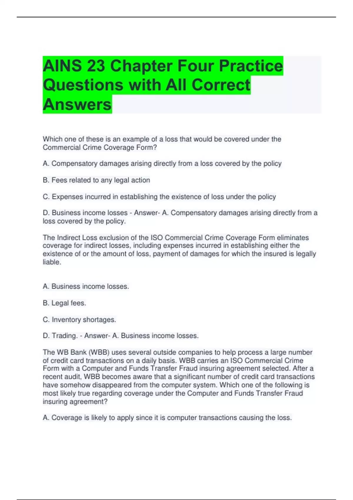D. Business income losses - Answer- A. Compensatory damages arising directly from a