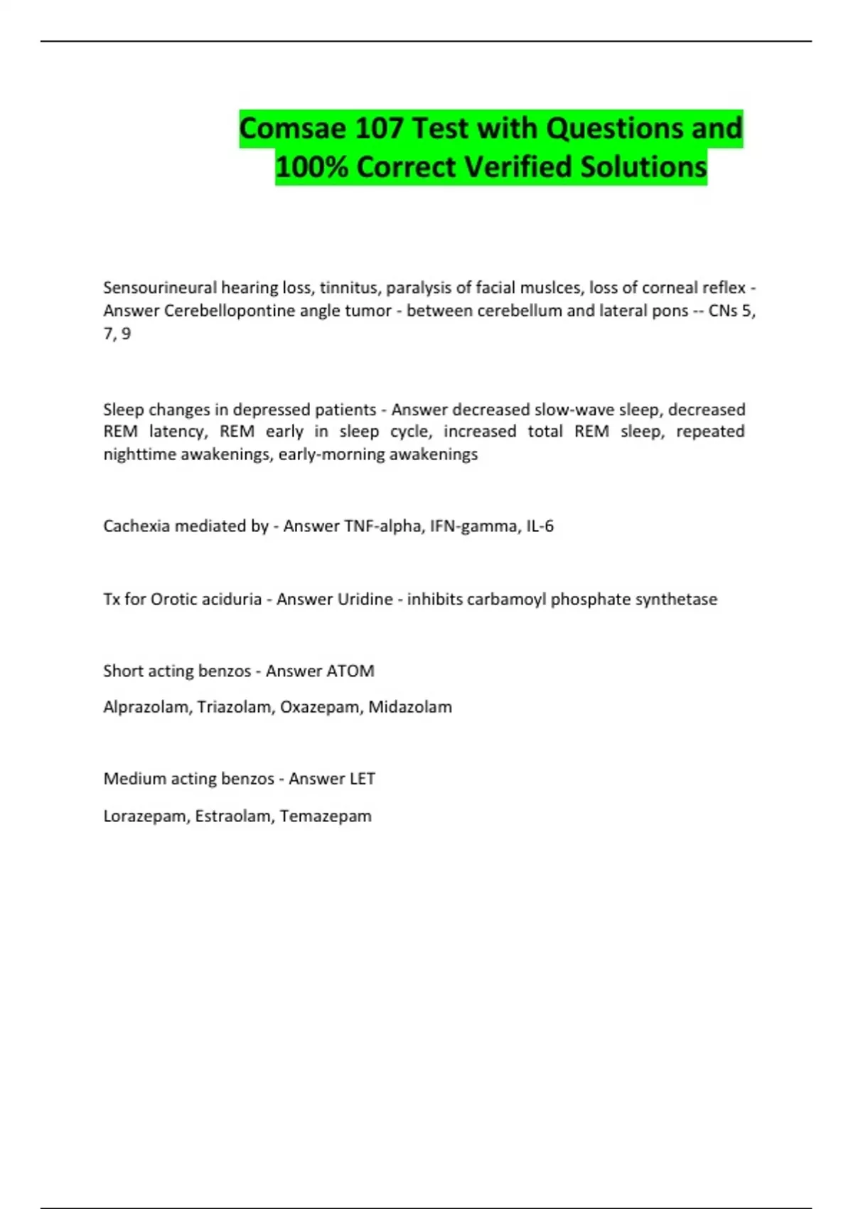 Comsae 107 Test with Questions and 100% Correct Verified Solutions