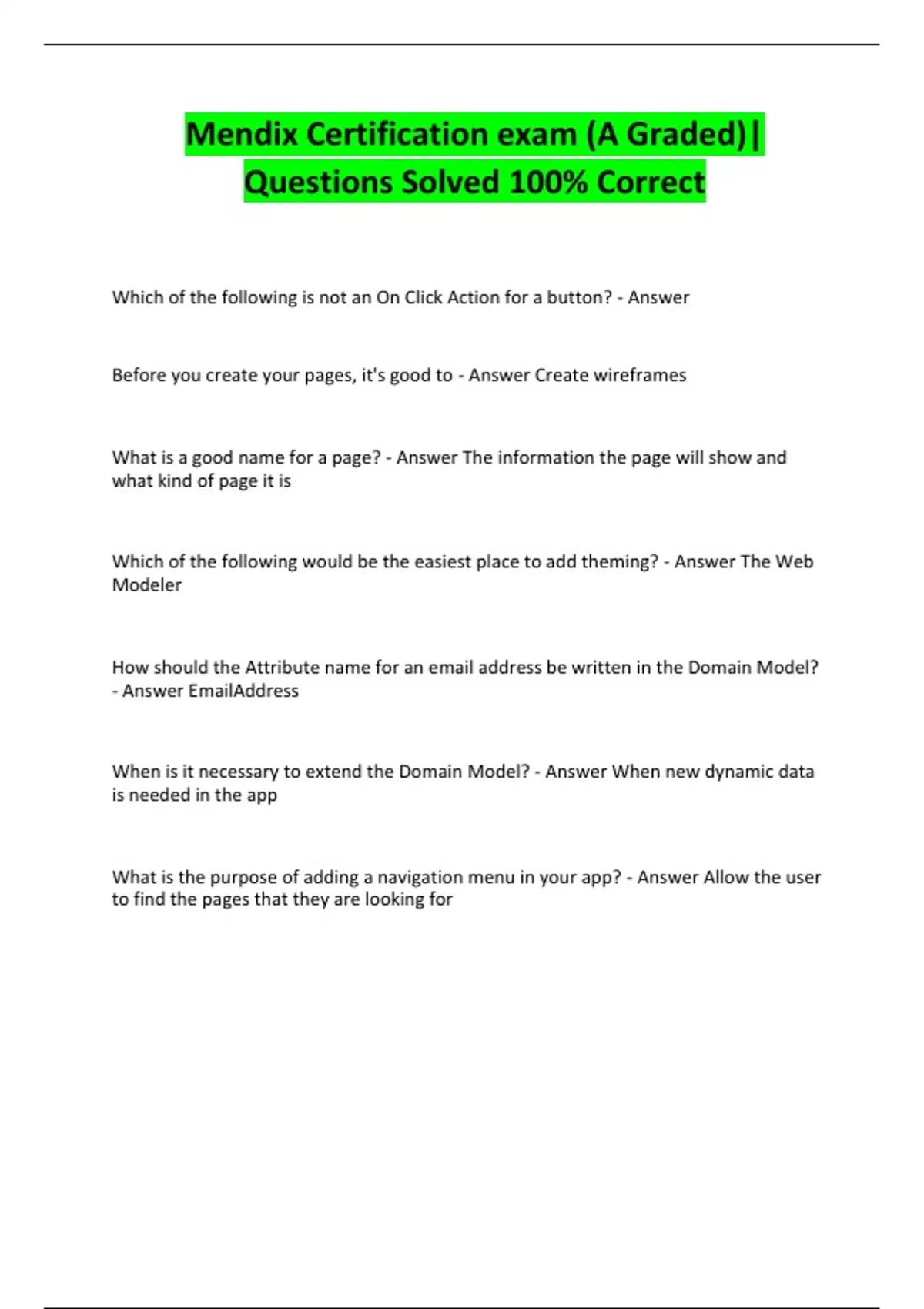 Mendix Certification exam (A Graded)|