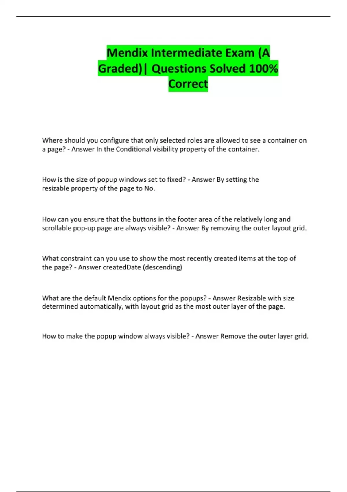 What are the default Mendix options for the popups? - Answer Resizable with size