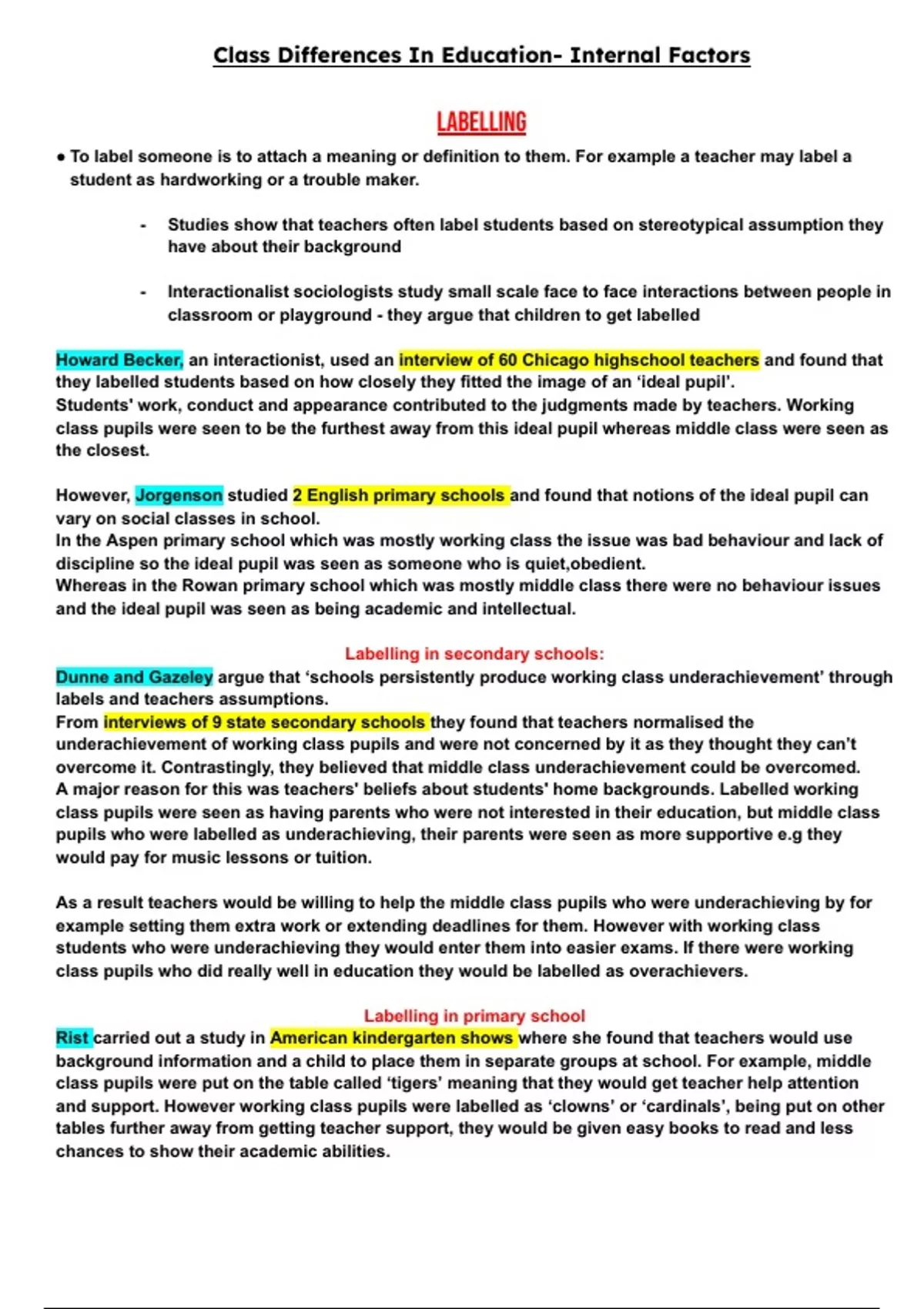 - Interactionalits argue that labelling can affect pupils' achievement as it creates a SFP.