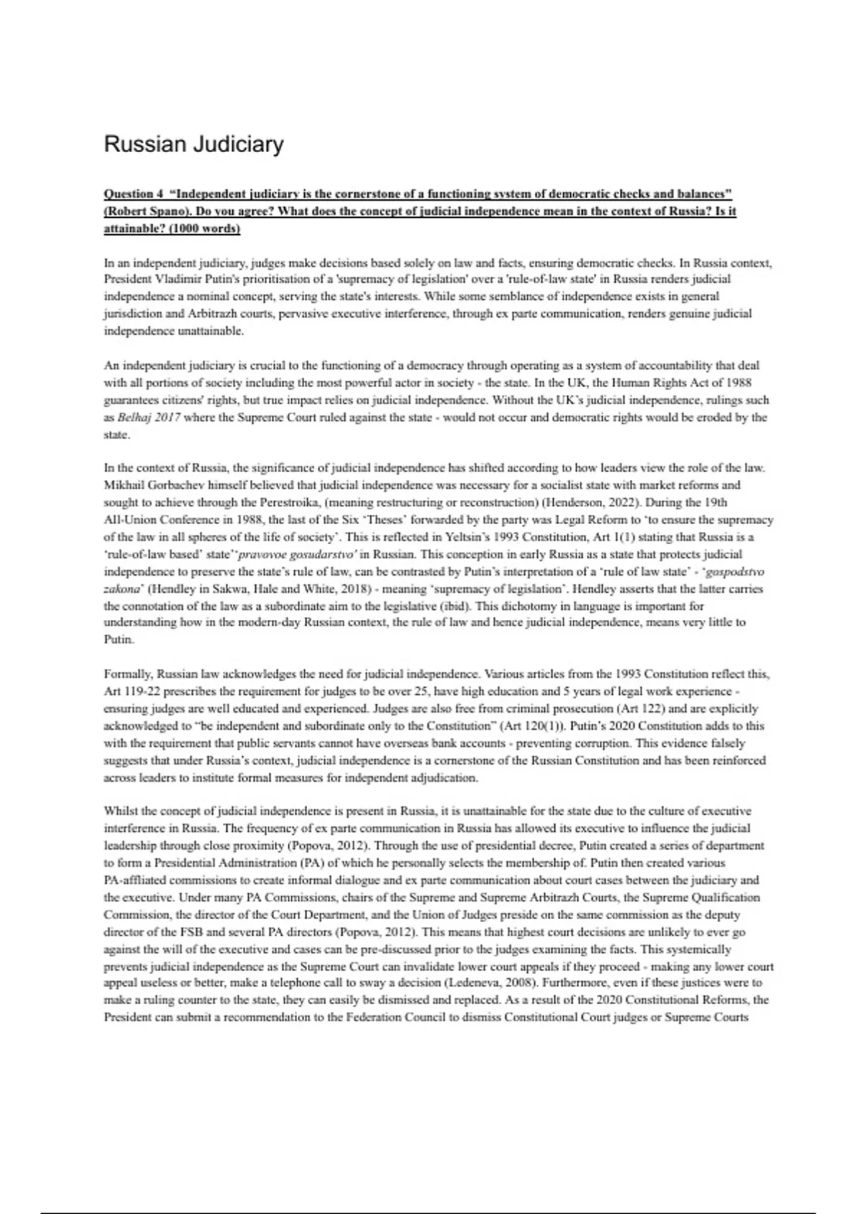 (Robert Spano). Do you agree? What does the concept of judicial independence mean in the context of Russia? Is it