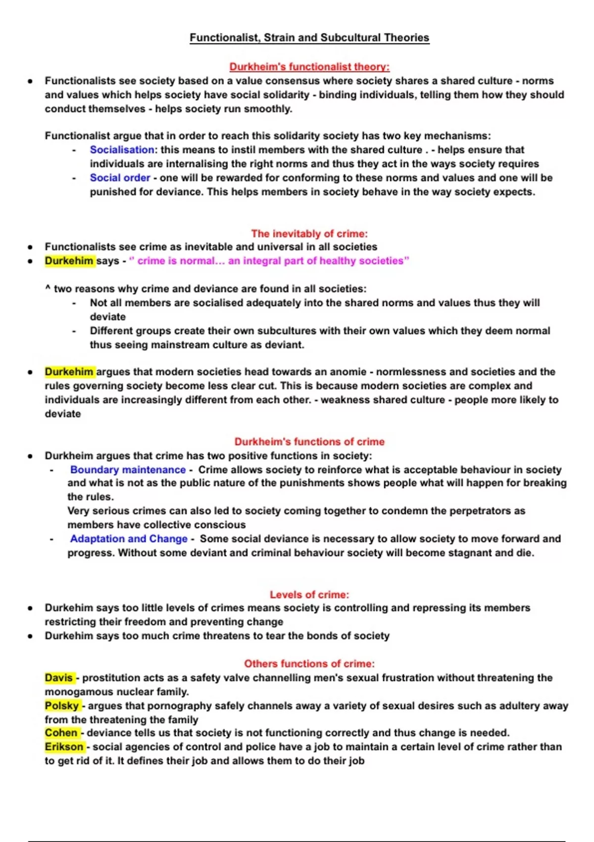 ● Durkehim says - ‘’ crime is normal… an integral part of healthy societies’’