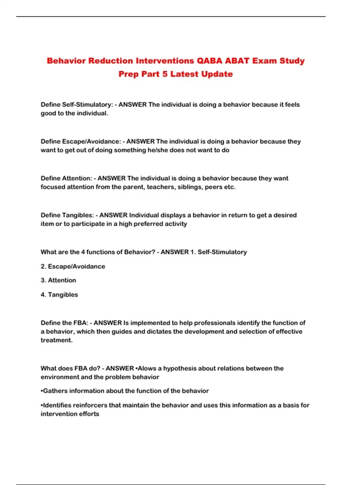 Behavior Reduction Interventions QABA ABAT Exam Study