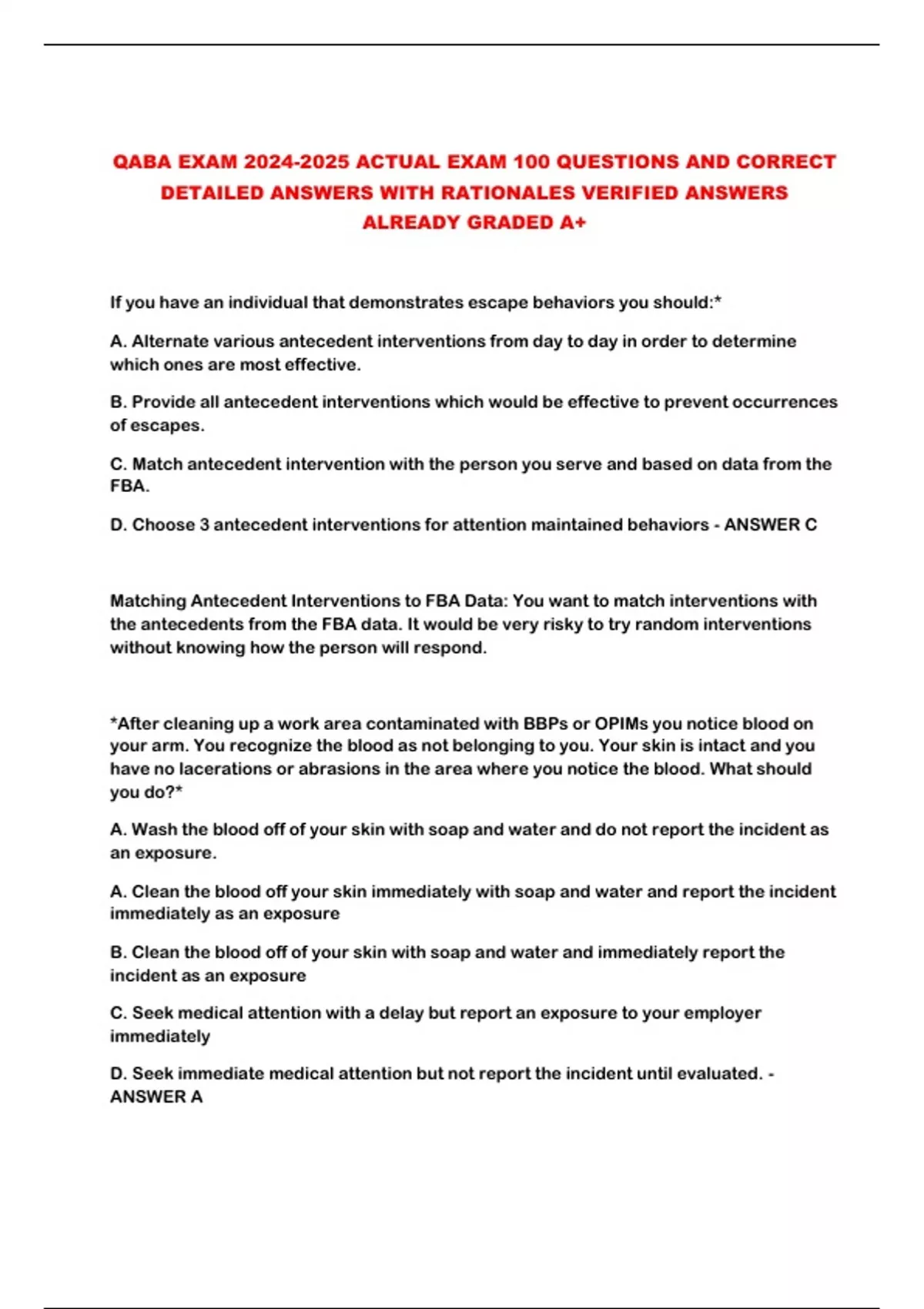 DETAILED ANSWERS WITH RATIONALES VERIFIED ANSWERS
