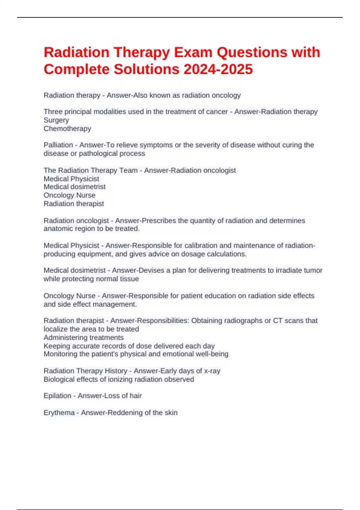 The Radiation Therapy Team - Answer-Radiation oncologist