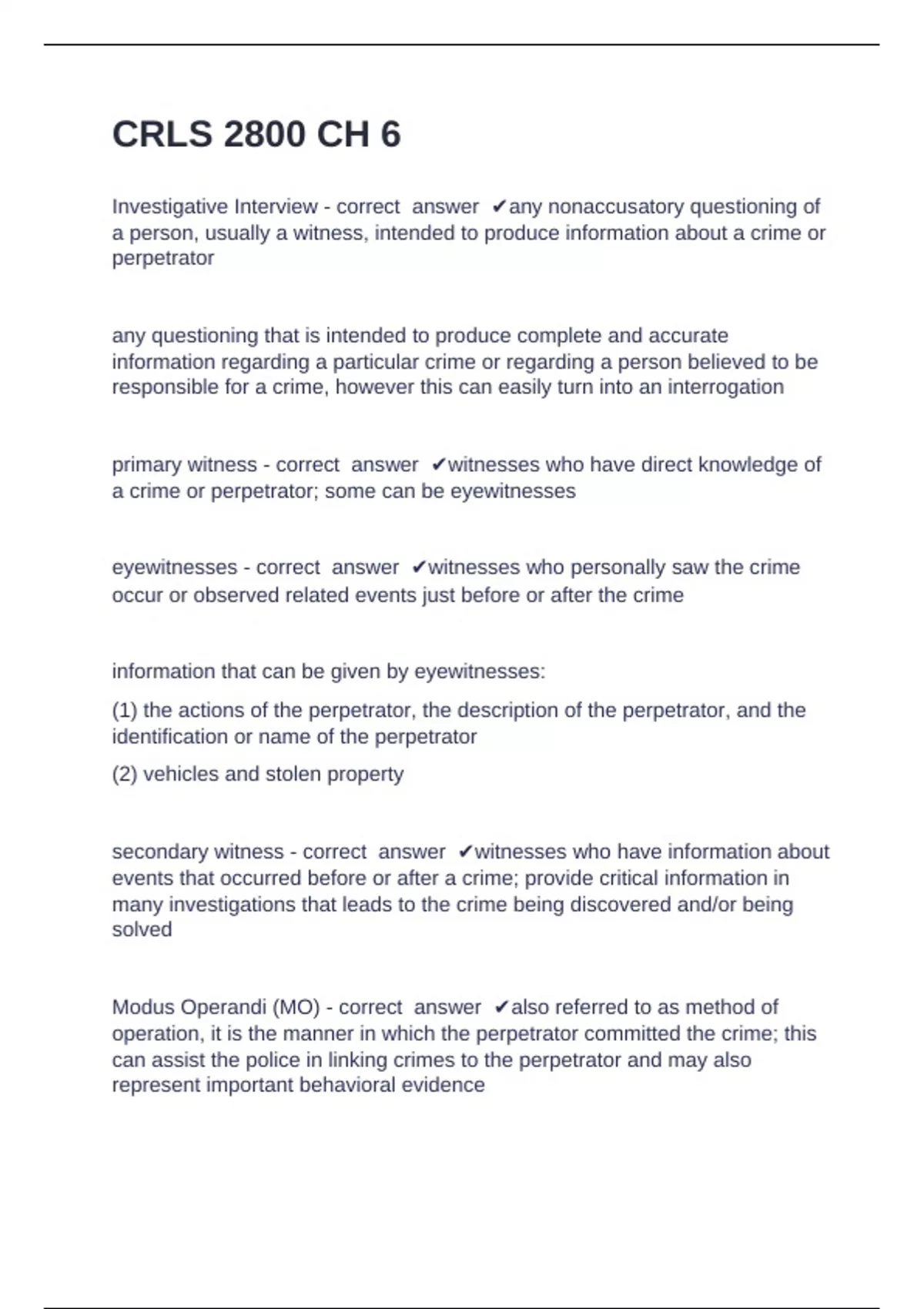 Investigative Interview - correct answer ✔any nonaccusatory questioning of