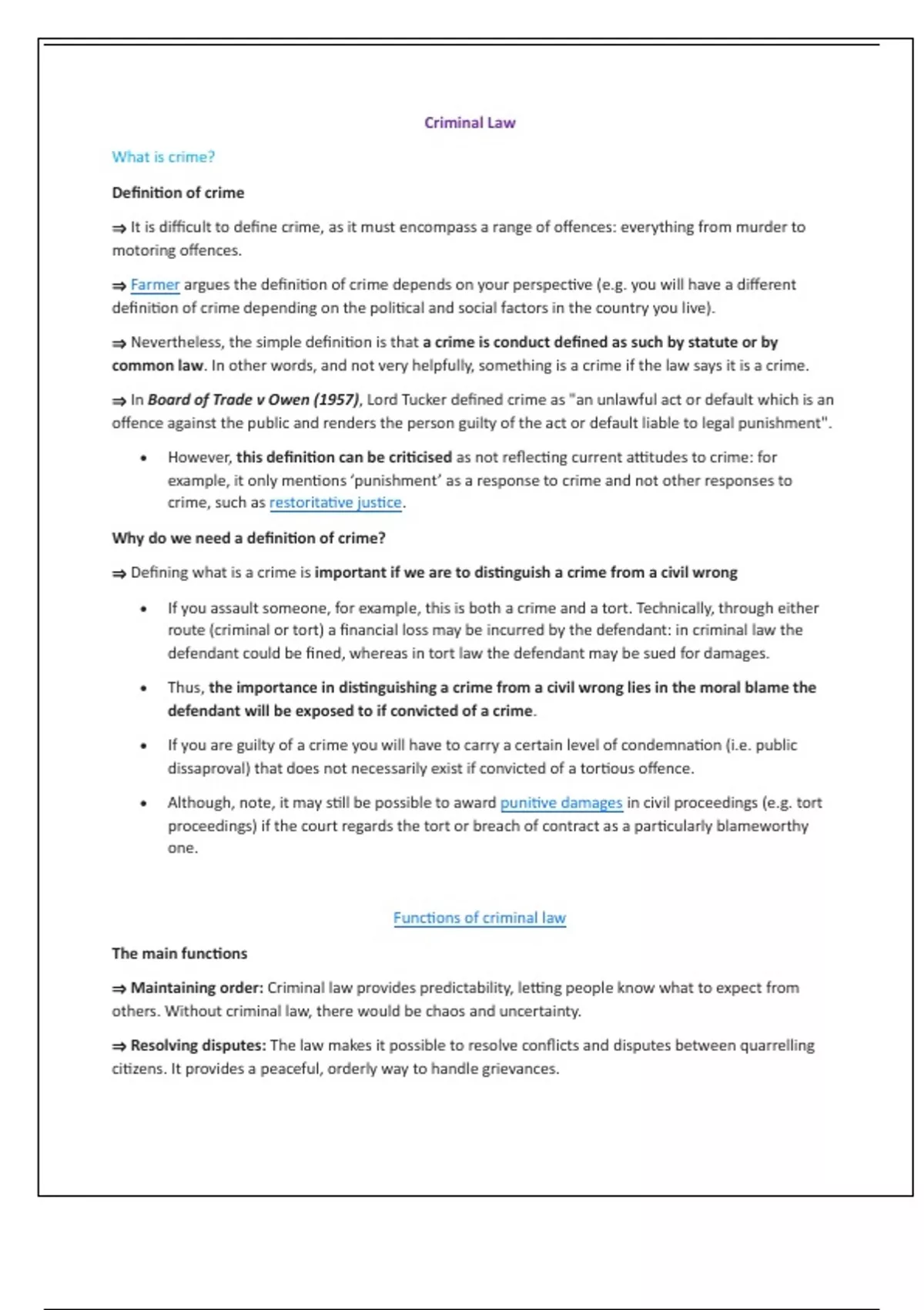 ⇒ Defining what is a crime is important if we are to distinguish a crime from a civil wrong