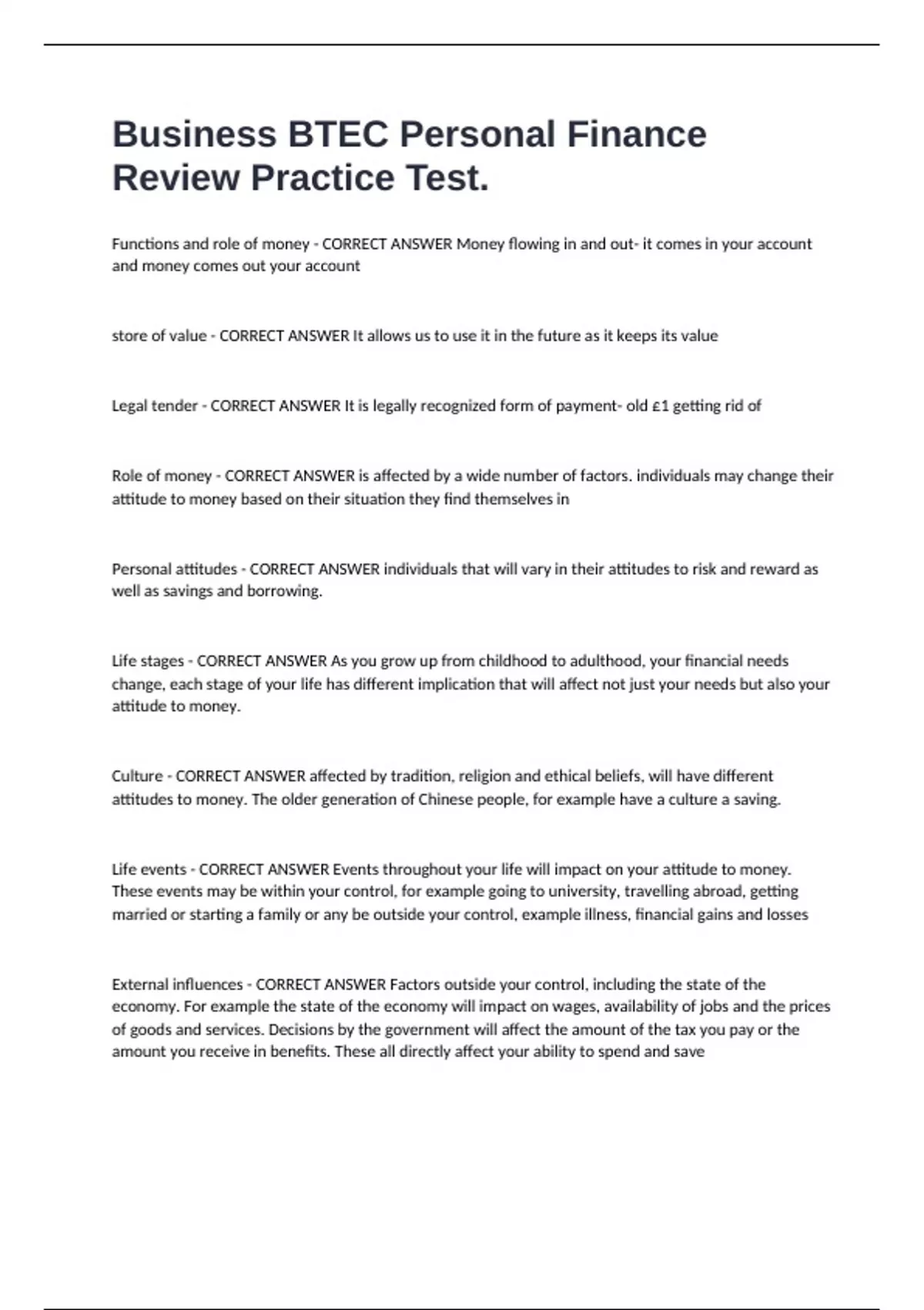 Life events - CORRECT ANSWER Events throughout your life will impact on your attitude to money.