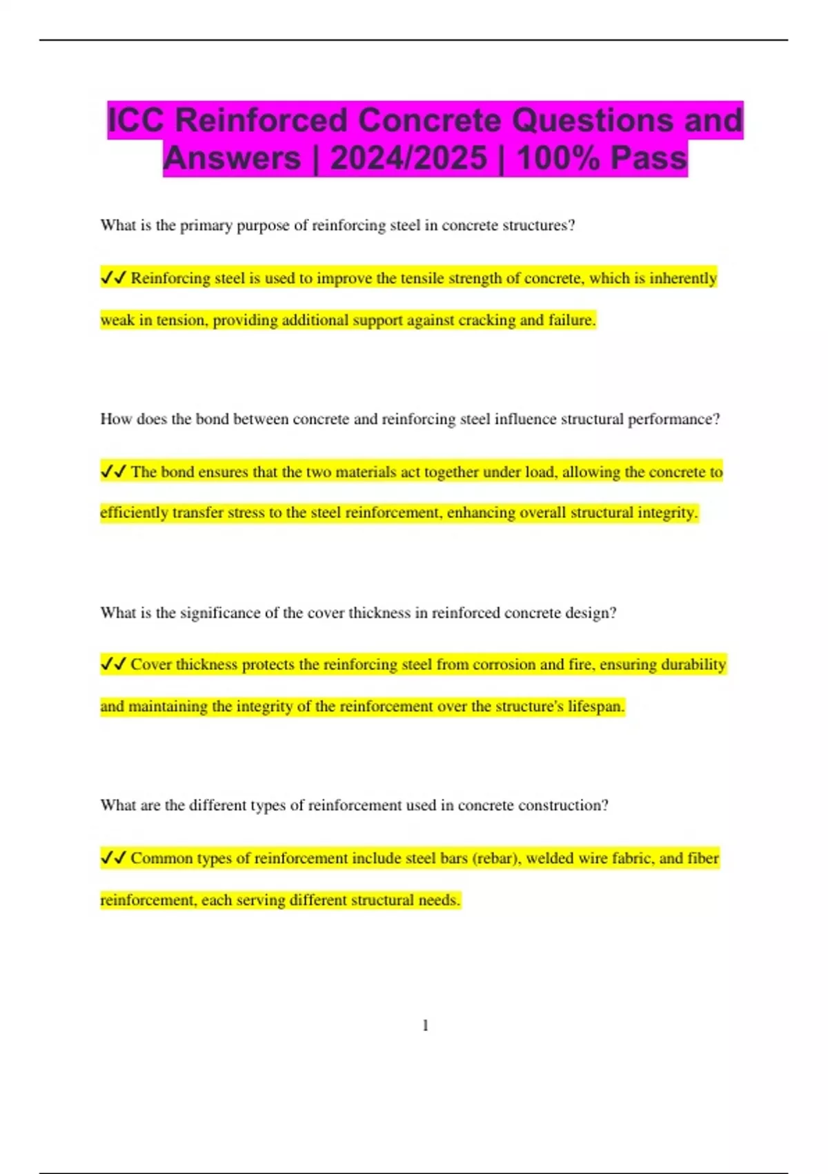 ✔✔ Reinforcing steel is used to improve the tensile strength of concrete, which is inherently