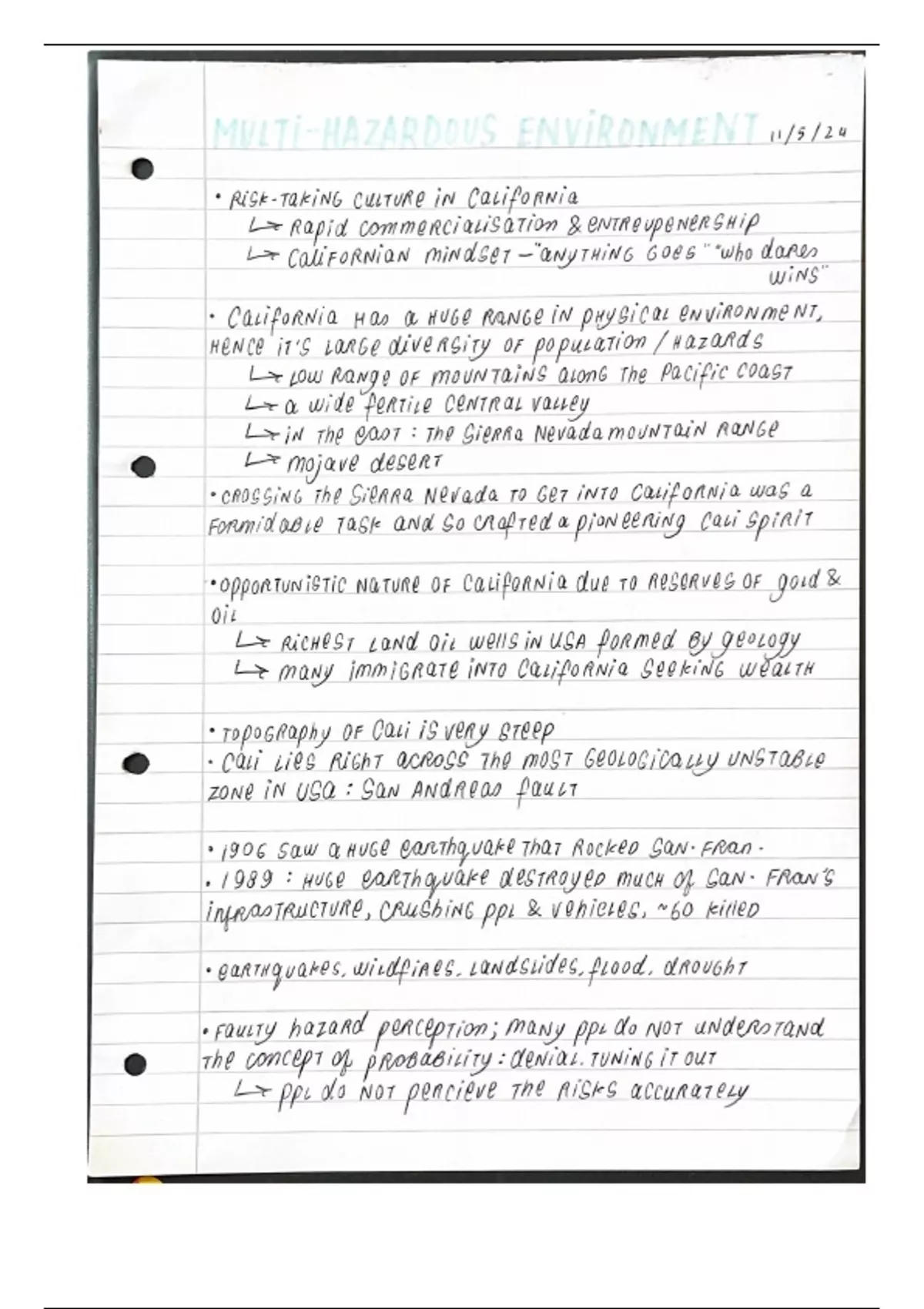 Detailed notes on SF Bay Area as a multi hazardous environment, all the info you would need for any potential essay in one document. From an A* A Level Geography student.