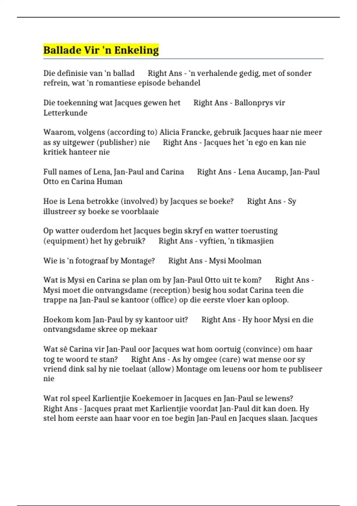 Hoe is Lena betrokke (involved) by Jacques se boeke? Right Ans - Sy