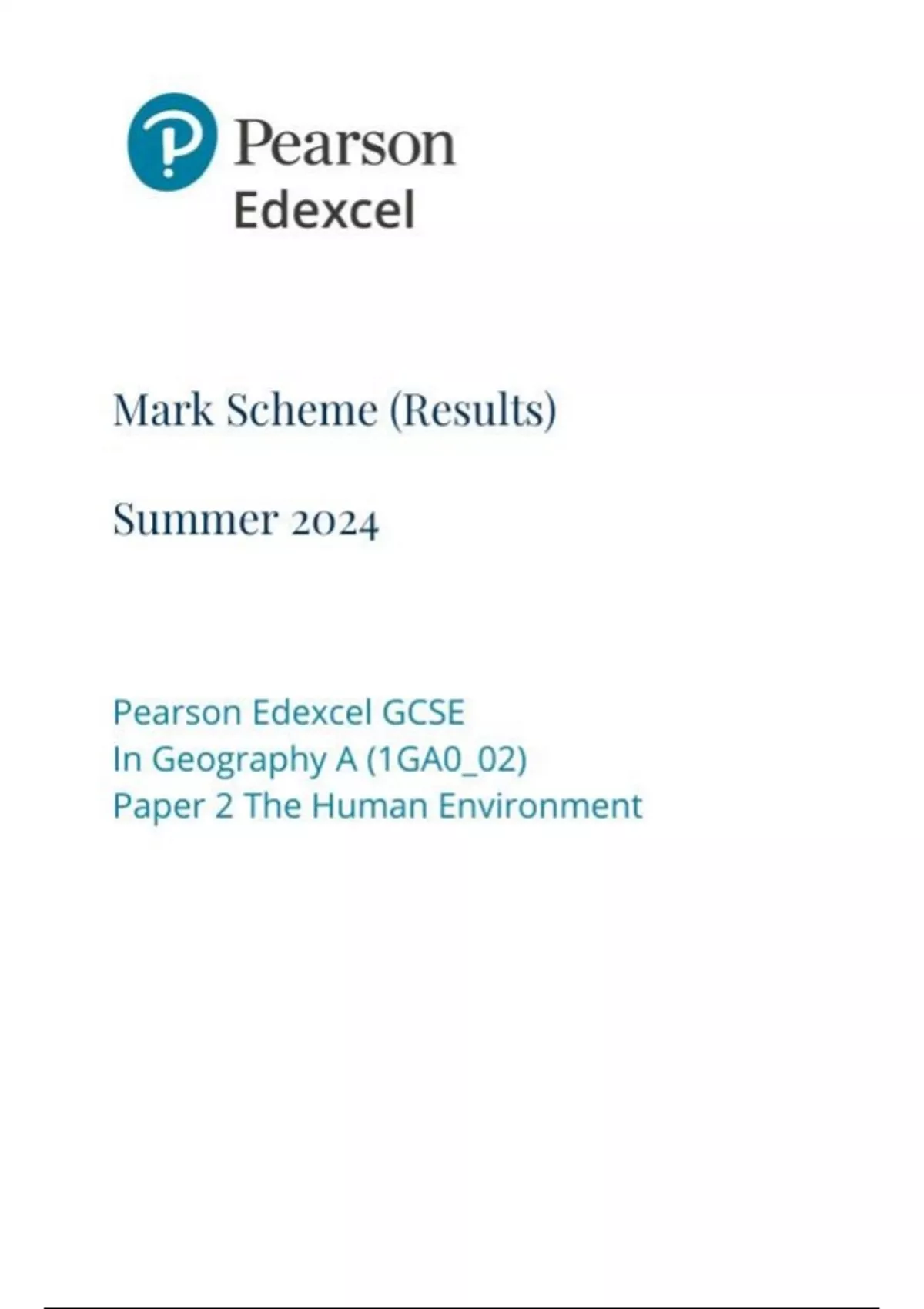 Pearson Edexcel GCSE In Geography A (1GA0_02) Paper 2 The Human Environment Mark scheme June 2024