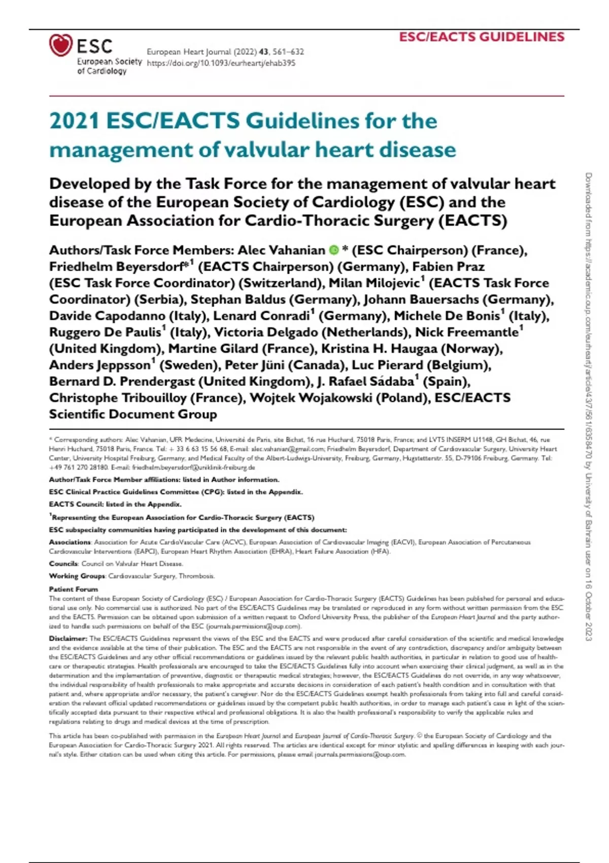 Disclaimer: The ESC/EACTS Guidelines represent the views of the ESC and the EACTS and were produced after careful consideration of the scientific and medical knowledge