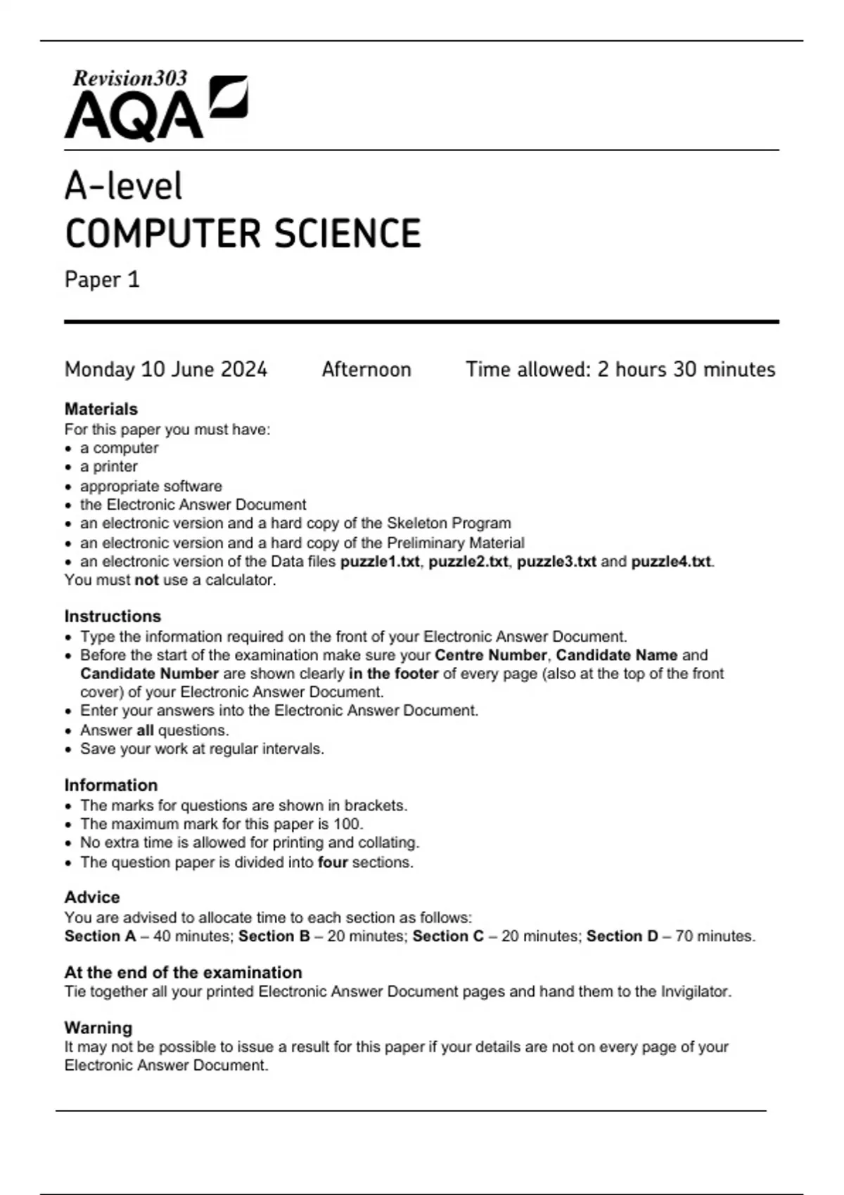 Monday 10 June 2024 Afternoon Time allowed: 2 hours 30 minutes
