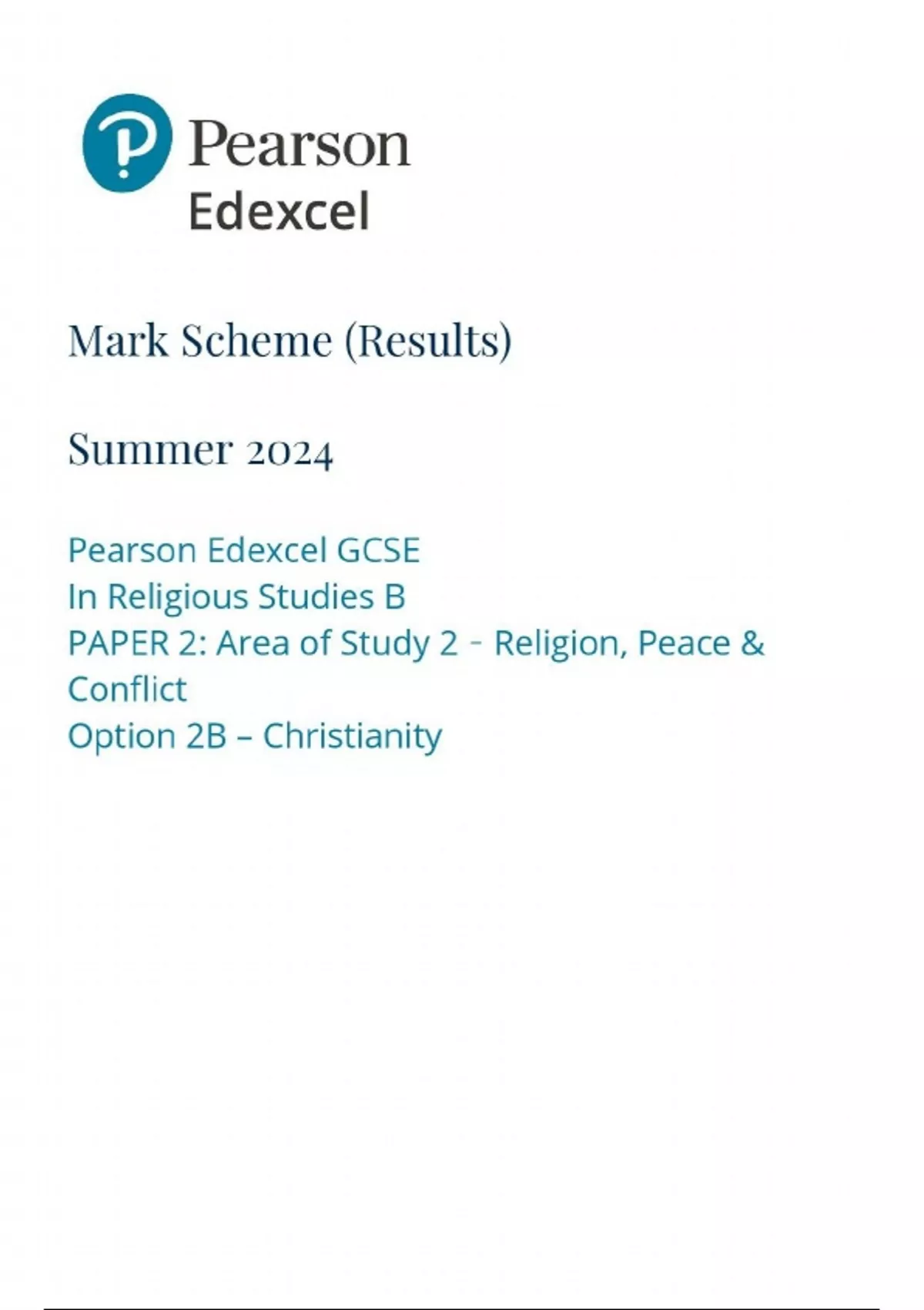 2024 EDEXCEL GCSE RELIGIOUS STUDIES B PAPER 2 OPTION 2B: CHRISTIANITY MARK SCHEME