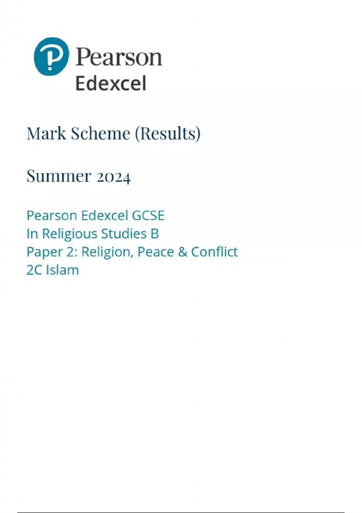 2024 EDEXCEL GCSE RELIGIOUS STUDIES B PAPER 2 OPTION 2C: ISLAM MARK SCHEME