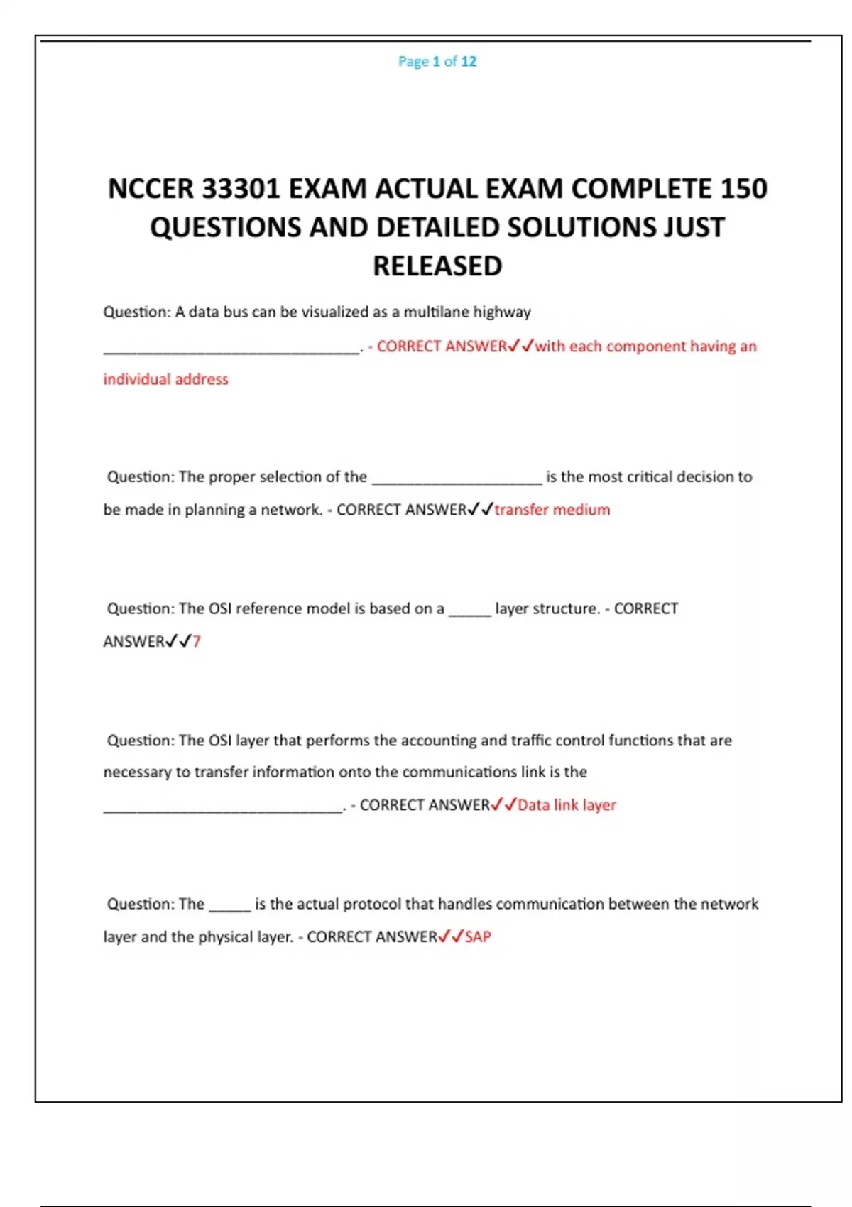 NCCER 33301 EXAM ACTUAL EXAM COMPLETE 150
