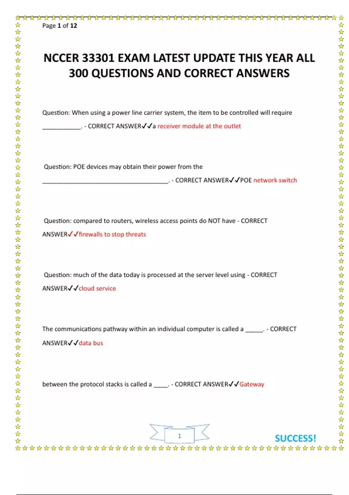 NCCER 33301 EXAM LATEST UPDATE THIS YEAR ALL