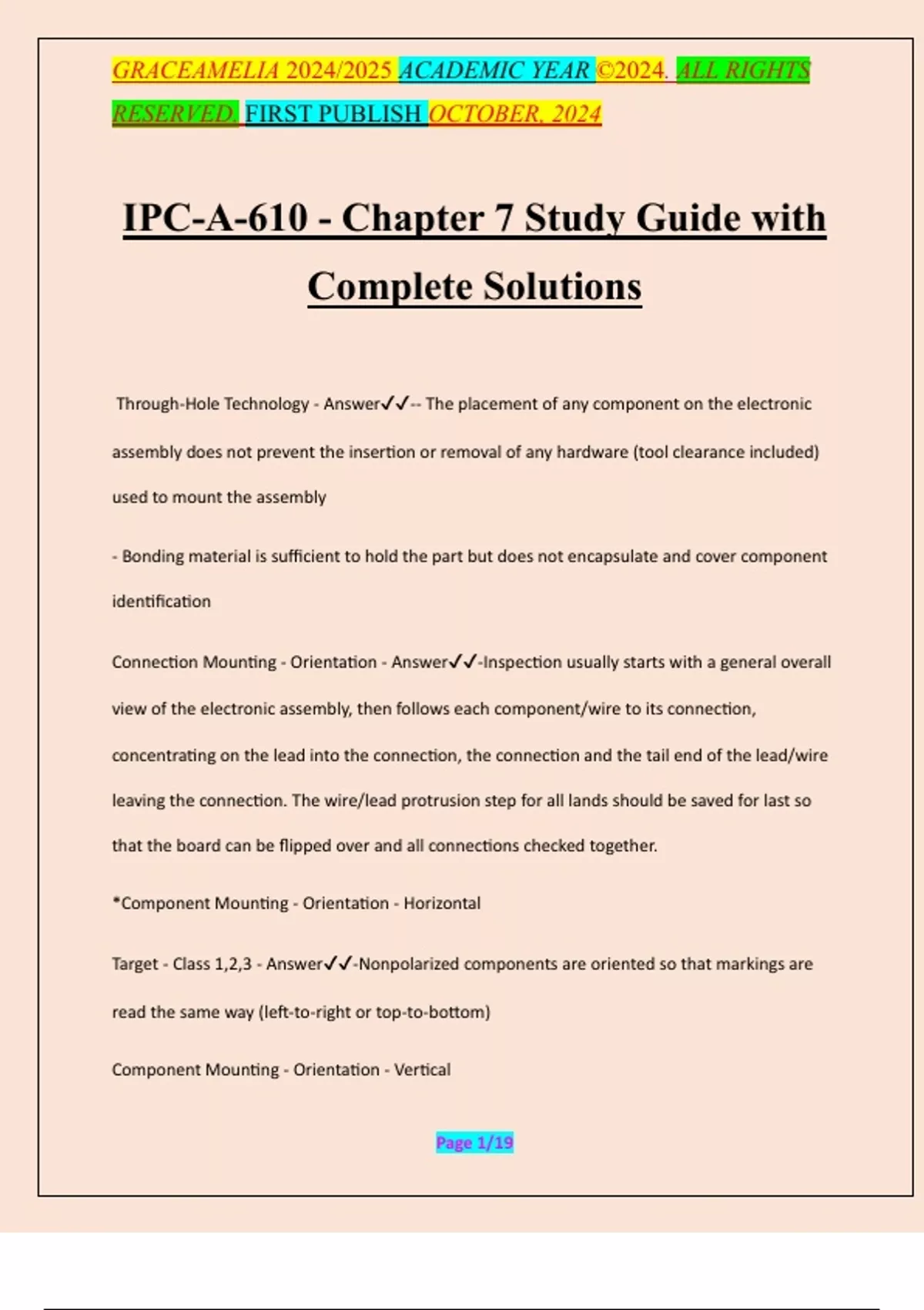 IPC-A-610 - Chapter 7 Study Guide with