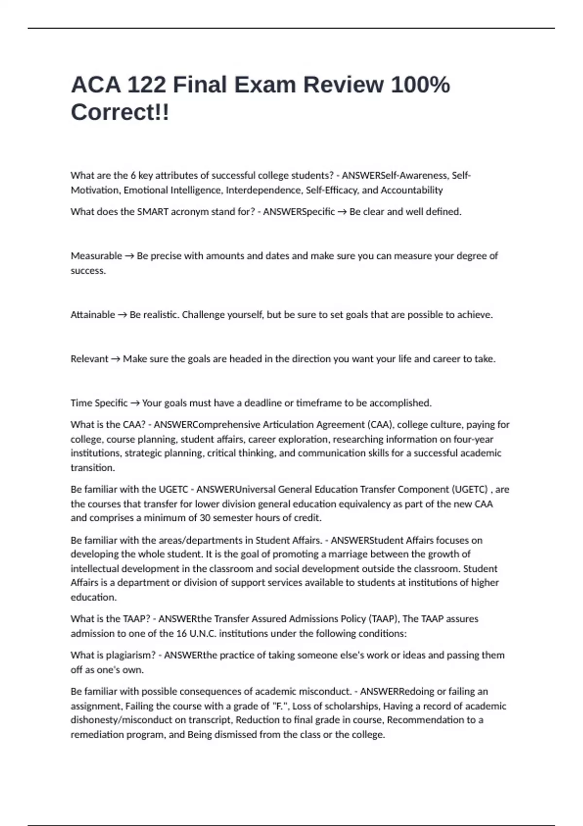 Be familiar with possible consequences of academic misconduct. - ANSWERRedoing or failing an